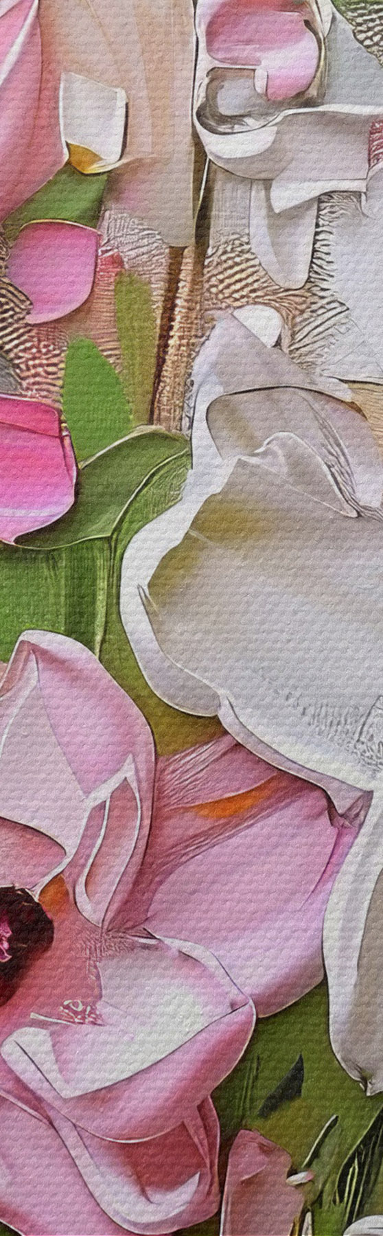 Trois types de matériaux peuvent être commandés : Economic Canvas - matériau dense et durable pour l'impression numérique, identique à la toile de peintre, surface imperméable, reproduction réaliste des détails, matériau à grain moyen. Premium Canvas - la texture ressemble à celle d'une toile de peintre (petits fils entrelacés). Reproduction douce et détaillée de l'image sur une surface mate. Eco-Premium - tissu 100 % coton de haute qualité. Grâce aux fibres naturelles de coton, le matériau est durable et résistant à l'usure. Excellente reproduction des couleurs et des détails.