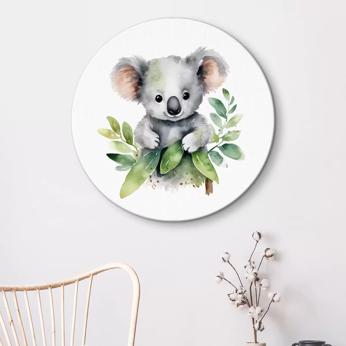 Tableaux rondes Koala se blottissant dans les feuilles vertes Nr r38920