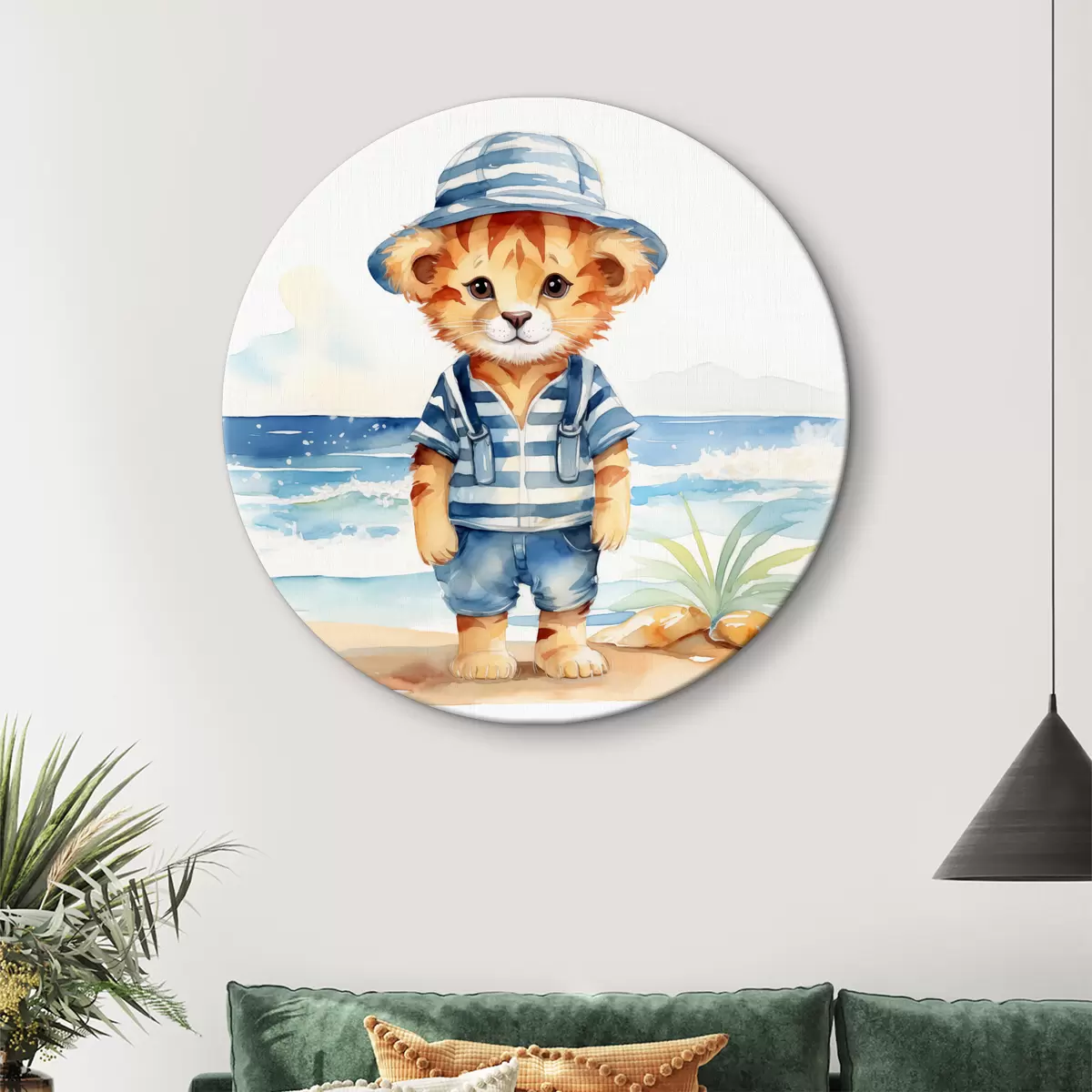Tableaux rondes Mignon lionceau profitant de la plage Nr r38944