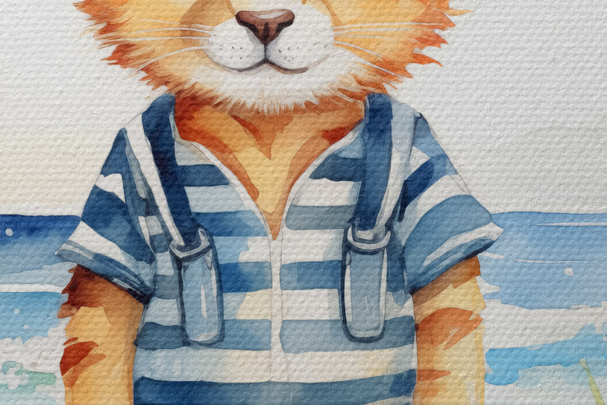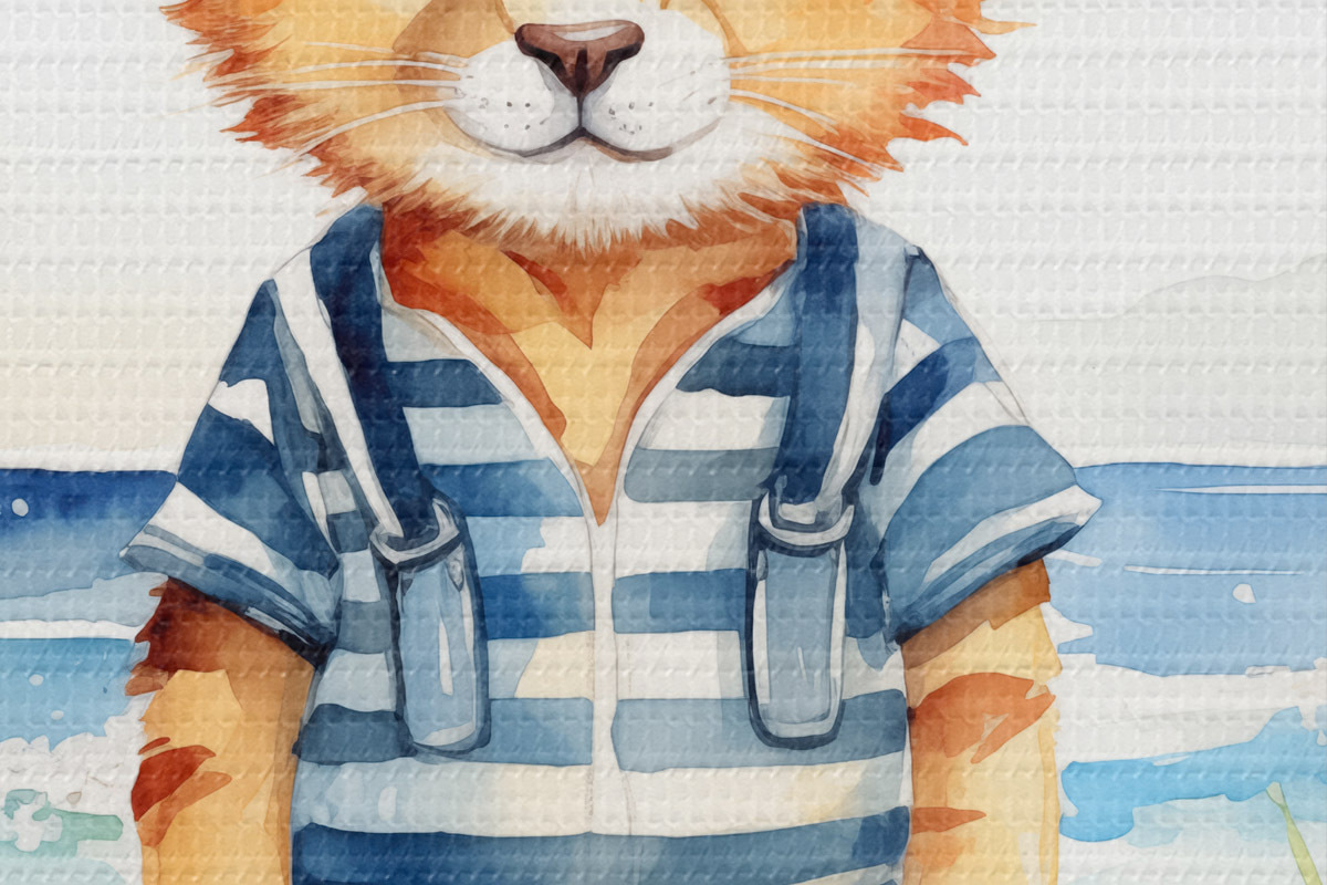 Tableaux rondes Mignon lionceau profitant de la plage r38944