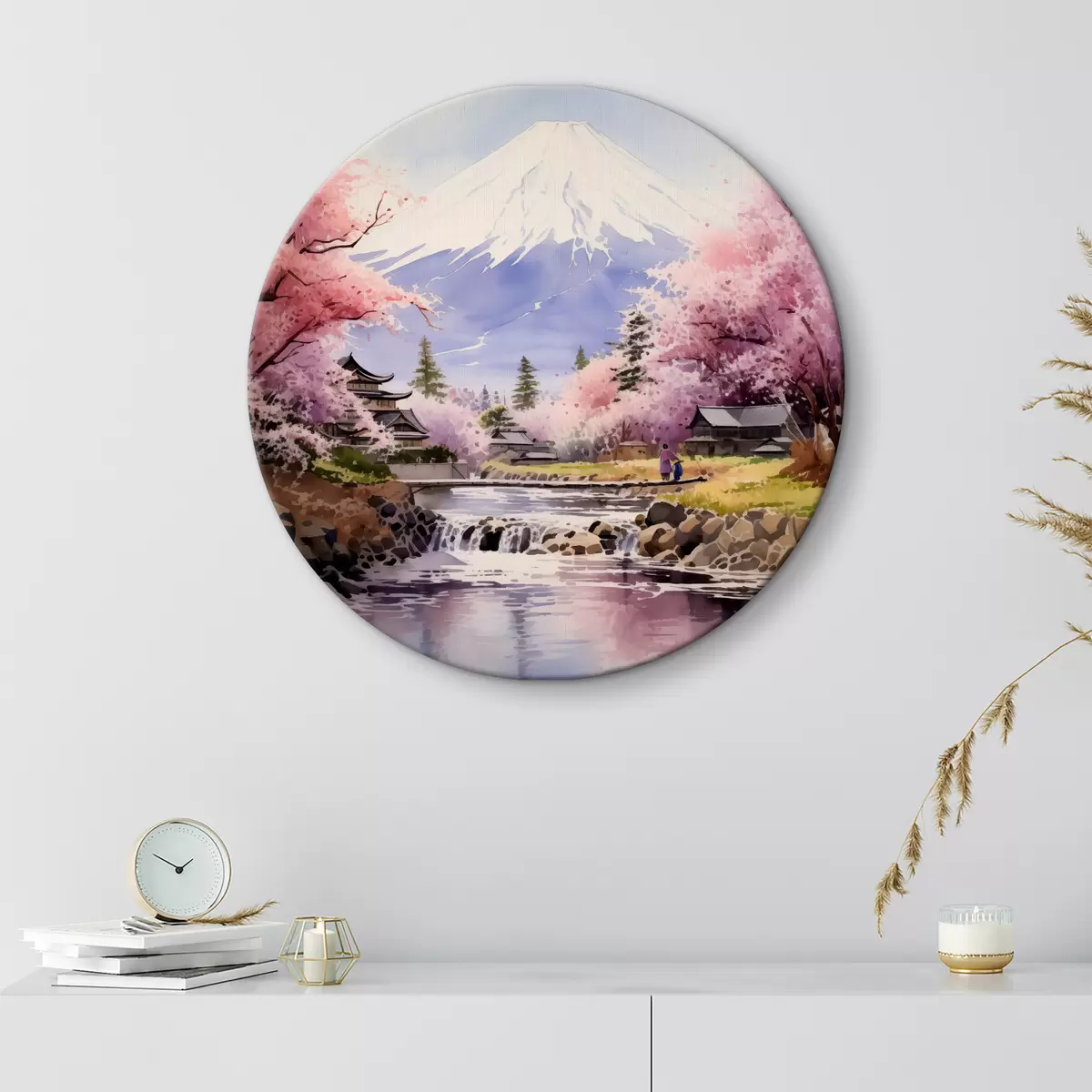 Tableaux rondes Les fleurs de sakura encadrent la sérénité du Fuji r38948