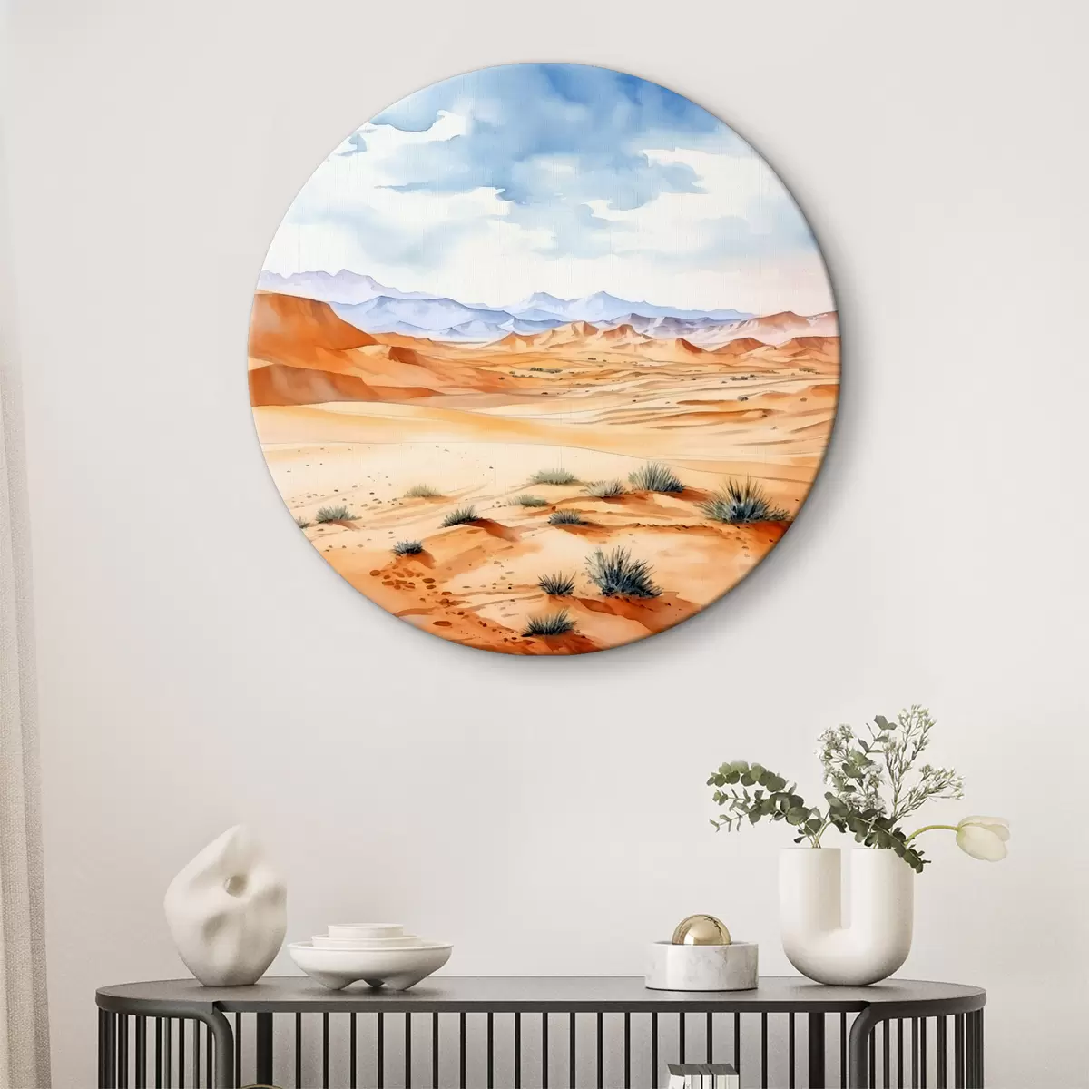 Tableaux rondes La tranquillité du désert rencontre la majesté des montagnes Nr r38949