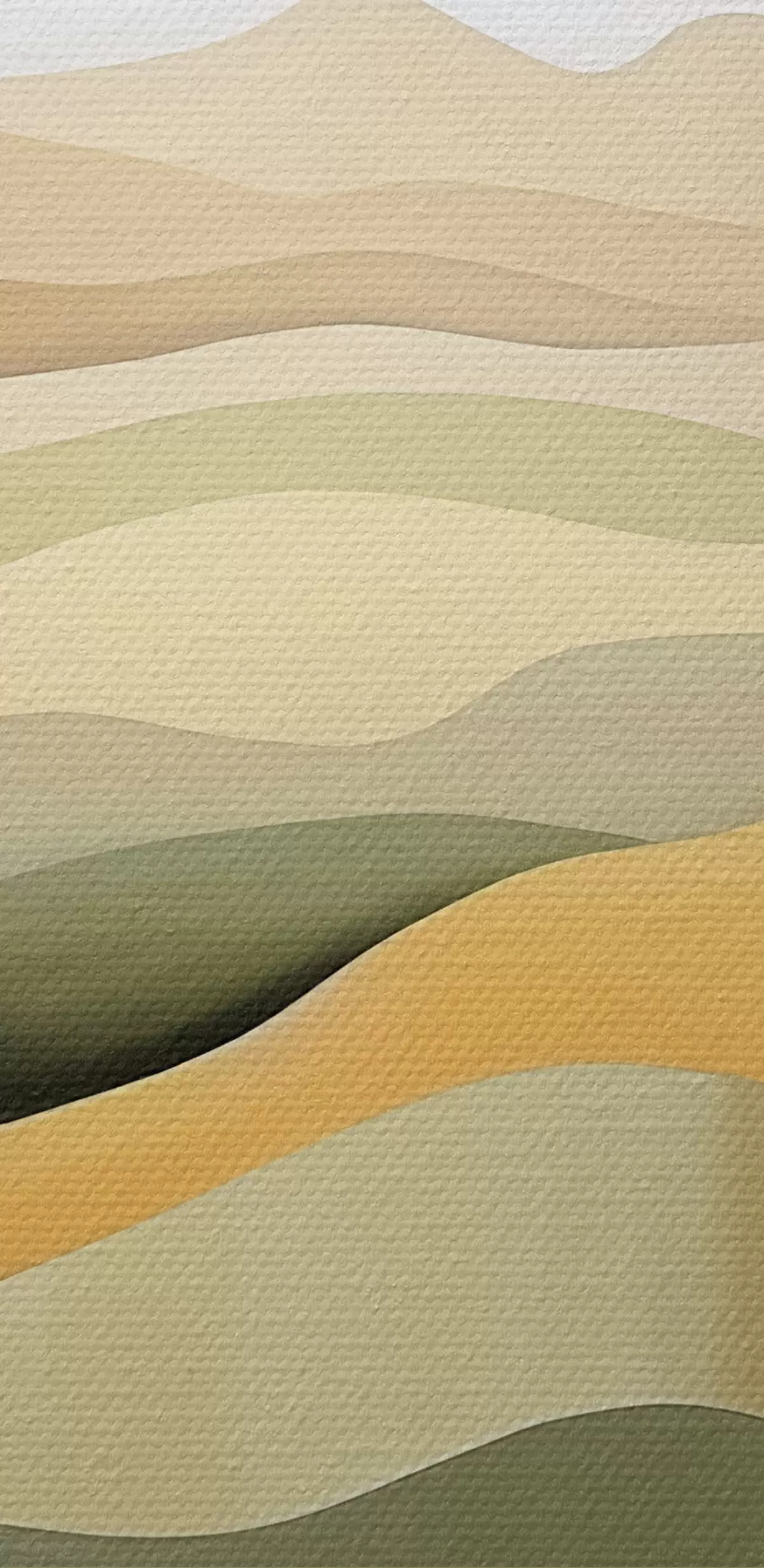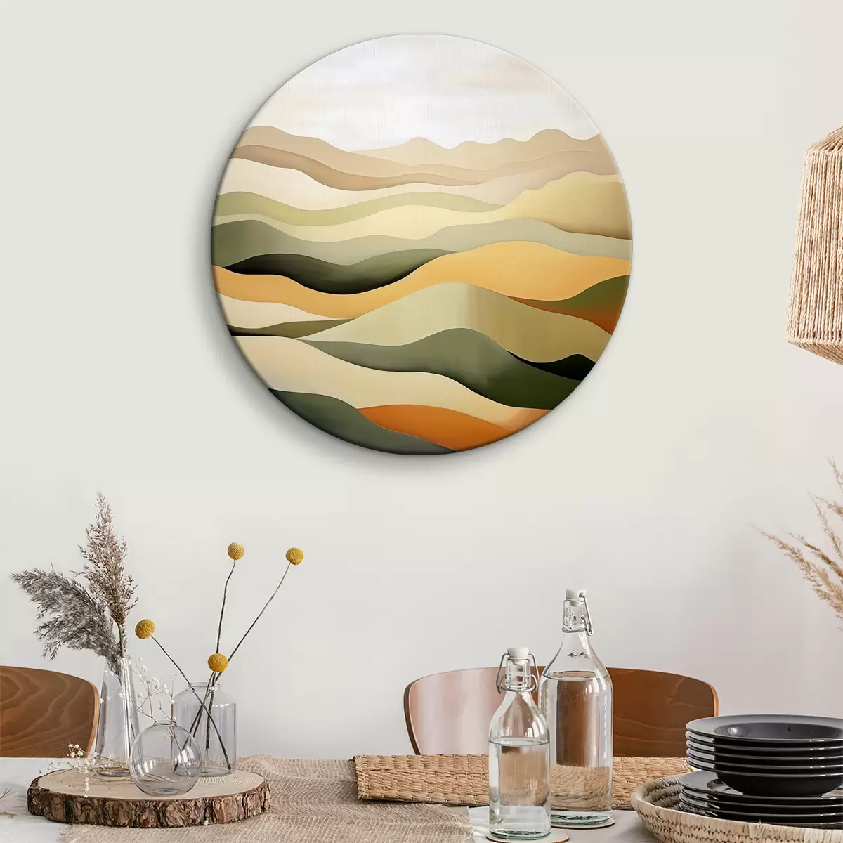 Tableaux rondes Collines, paysage abstrait, gouache, vert, ocre, sépia, gris r38952
