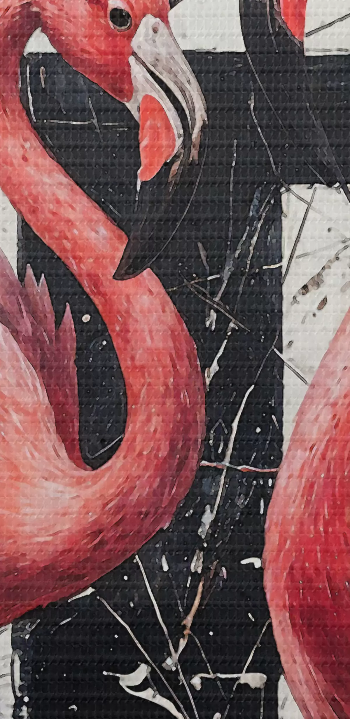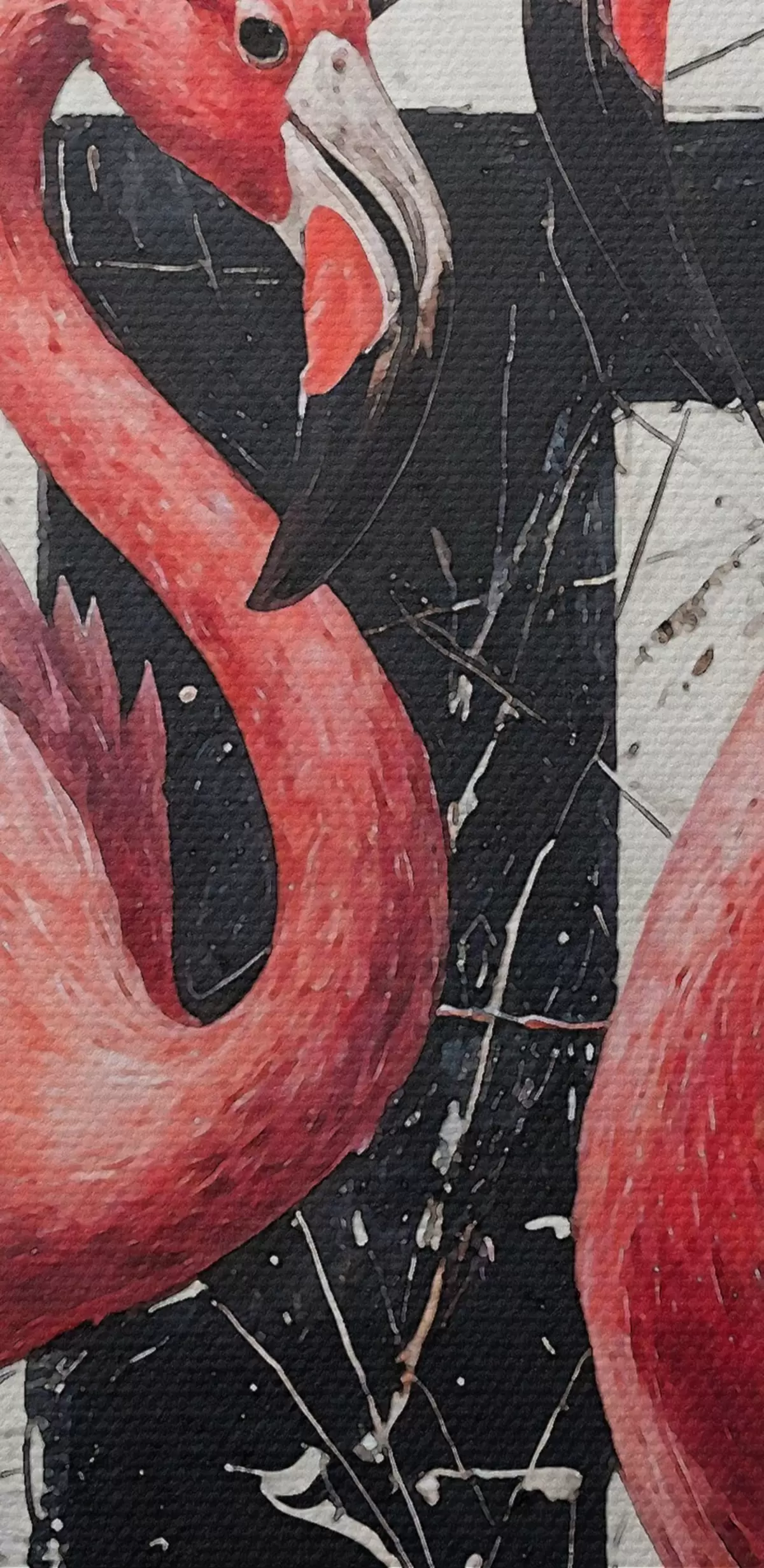 Tableaux rondes Deux flamants roses debout devant une peinture d'art de fond abstrait noir et blanc Nr r38954