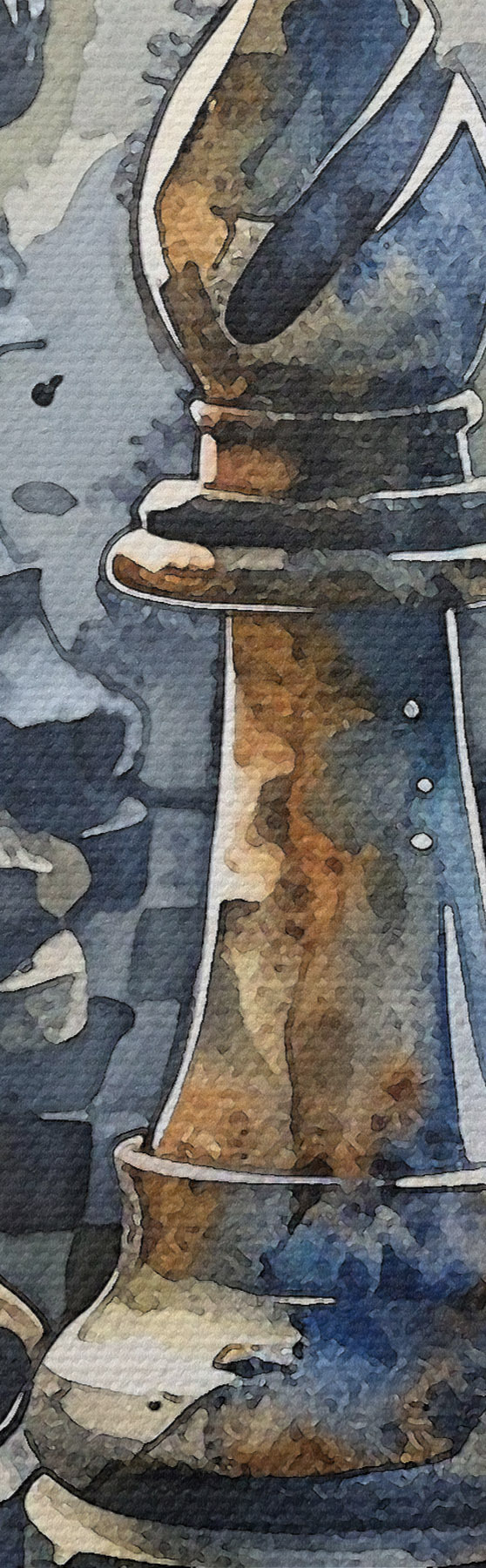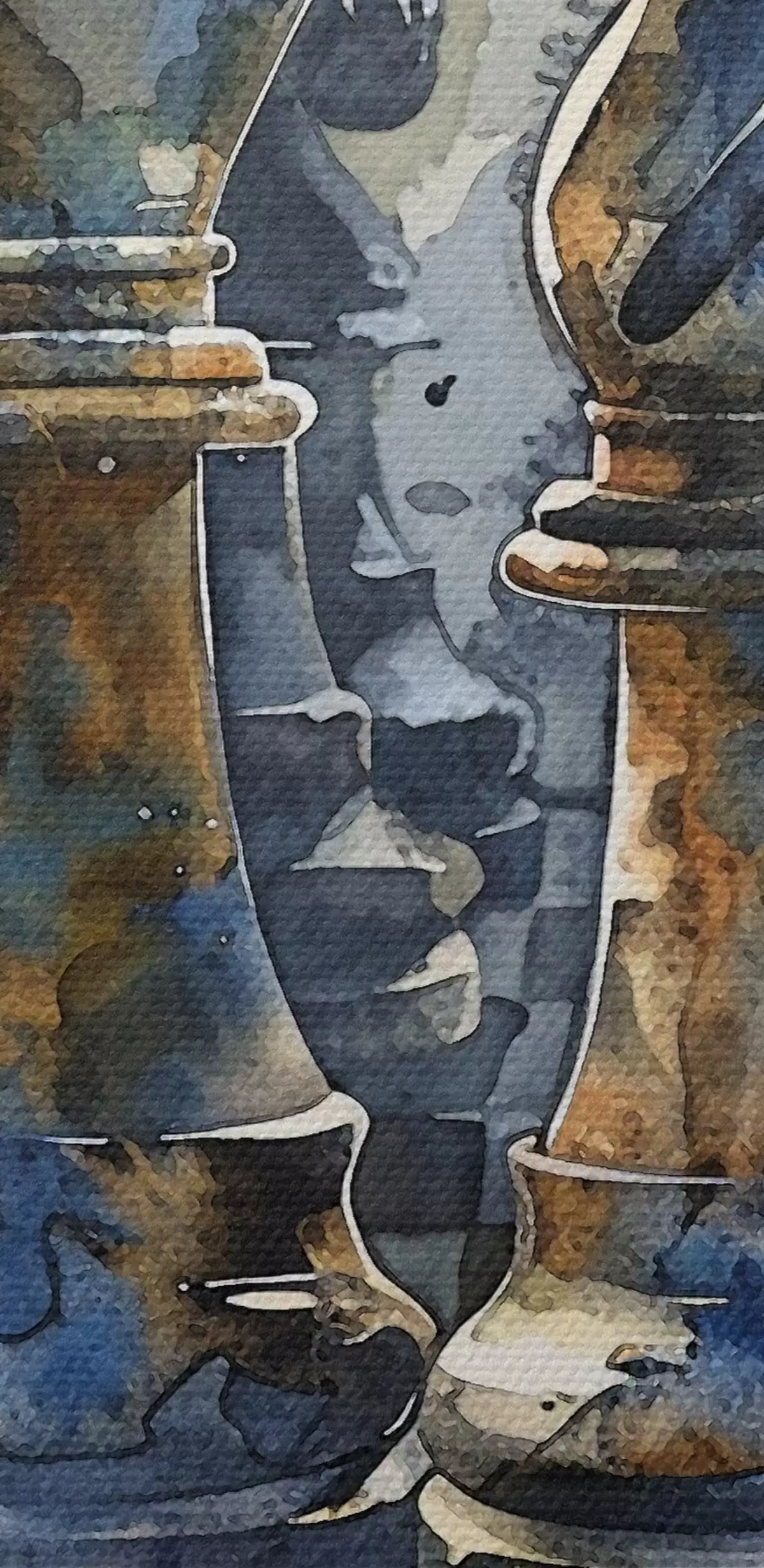 Tableaux rondes Peinture à l'aquarelle vue rapprochée d'un jeu d'échecs en métal ou en pierre, avec des dessins et des textures détaillés Nr r38960