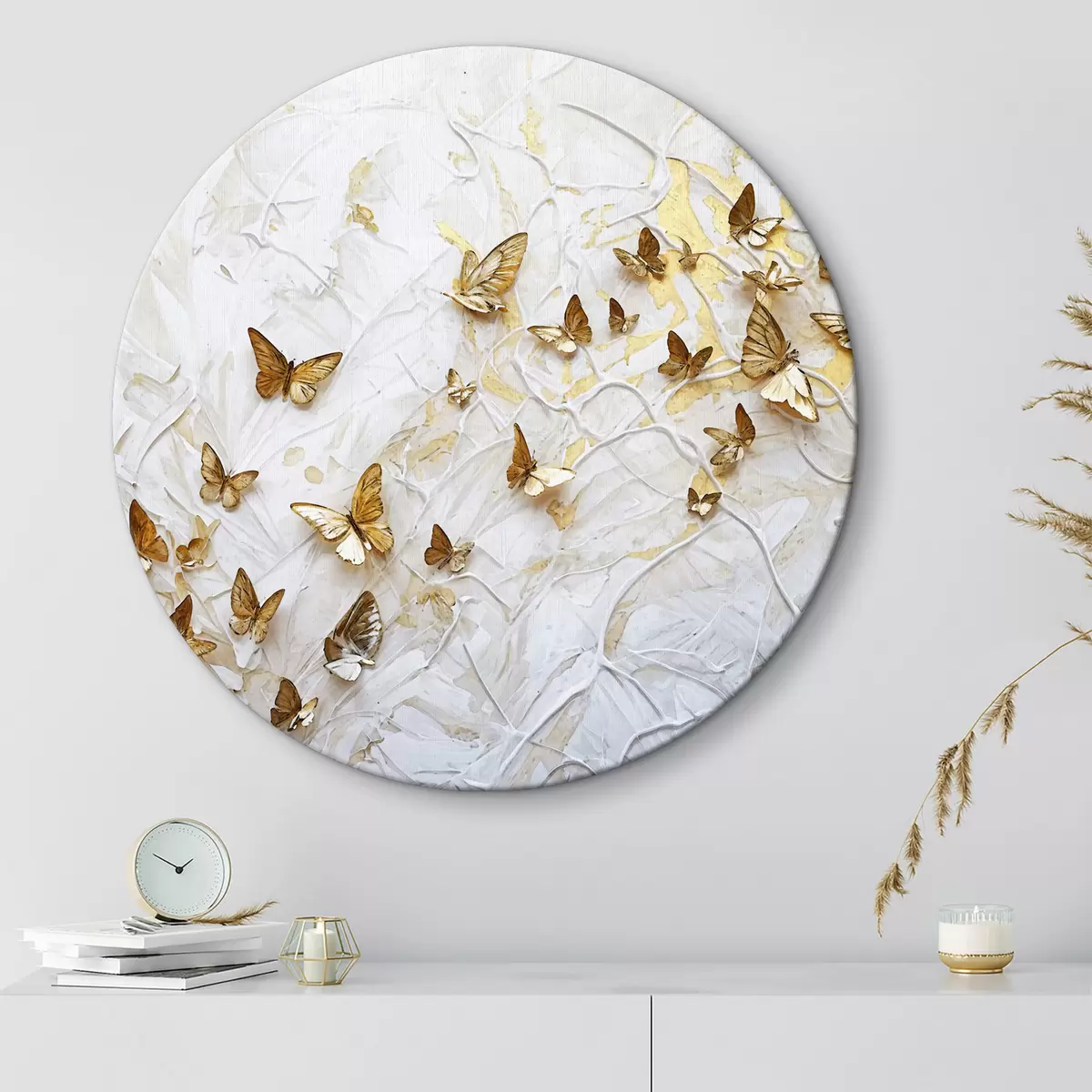 Tableaux rondes Un grand groupe de papillons sur un fond blanc, créant un motif magnifique et complexe Nr r38970