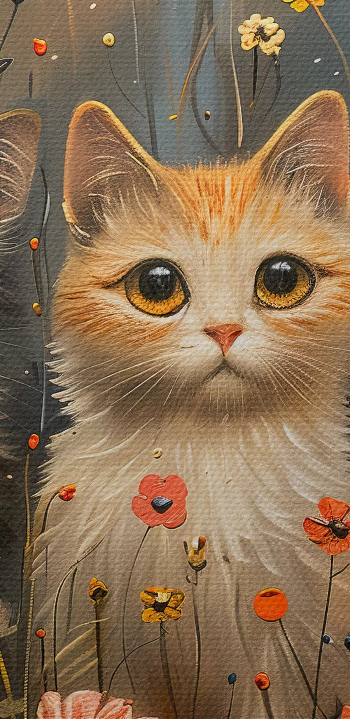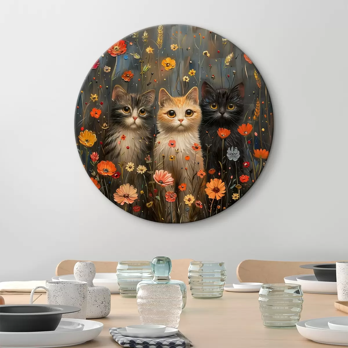 Tableaux rondes Trois chats dans les fleurs sauvages r39012