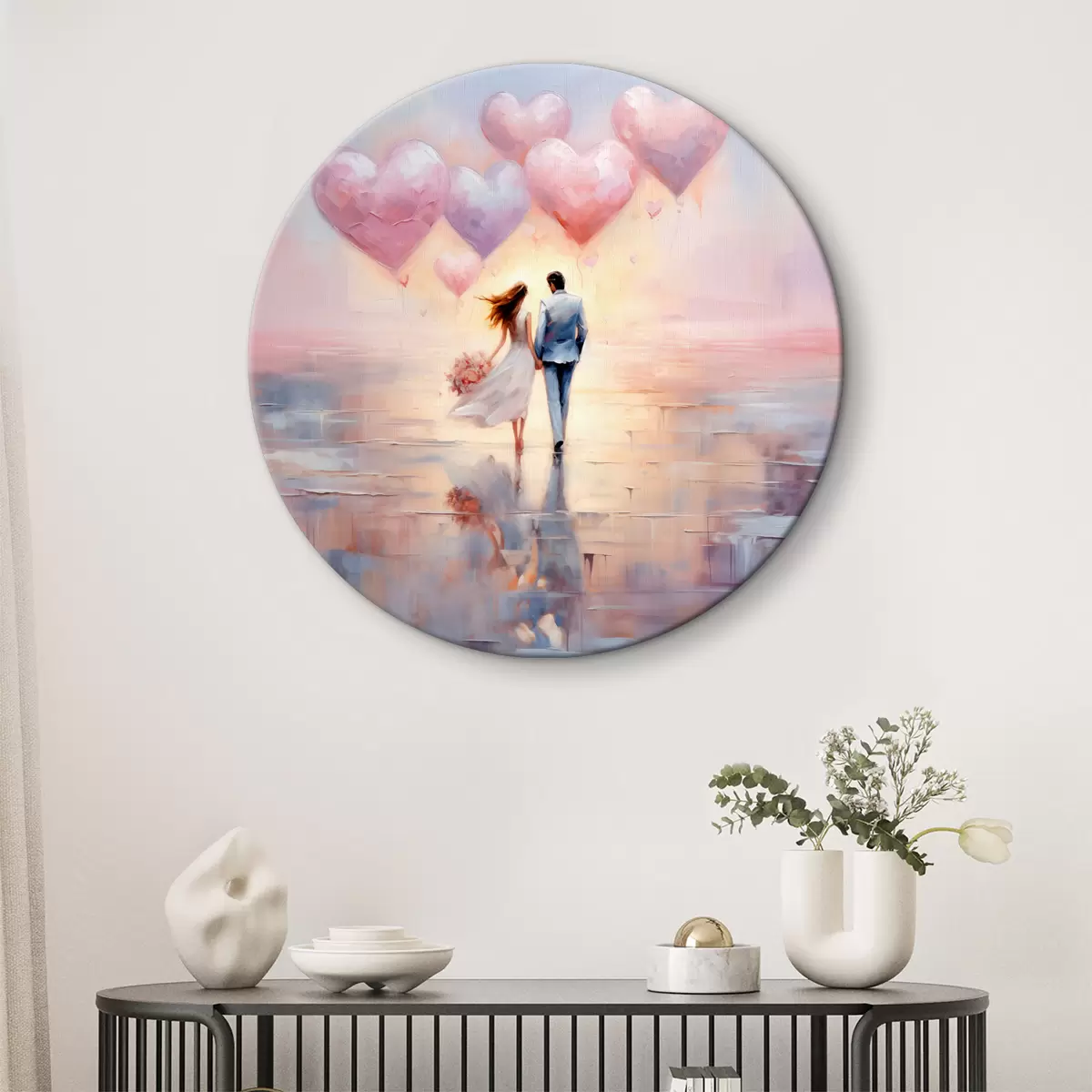 Tableaux rondes Promenade romantique sous les cœurs flottants r39017