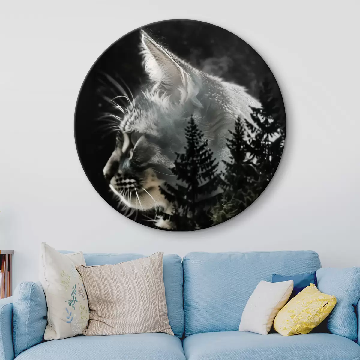 Tableaux rondes Chat avec des arbres de Noël r39028