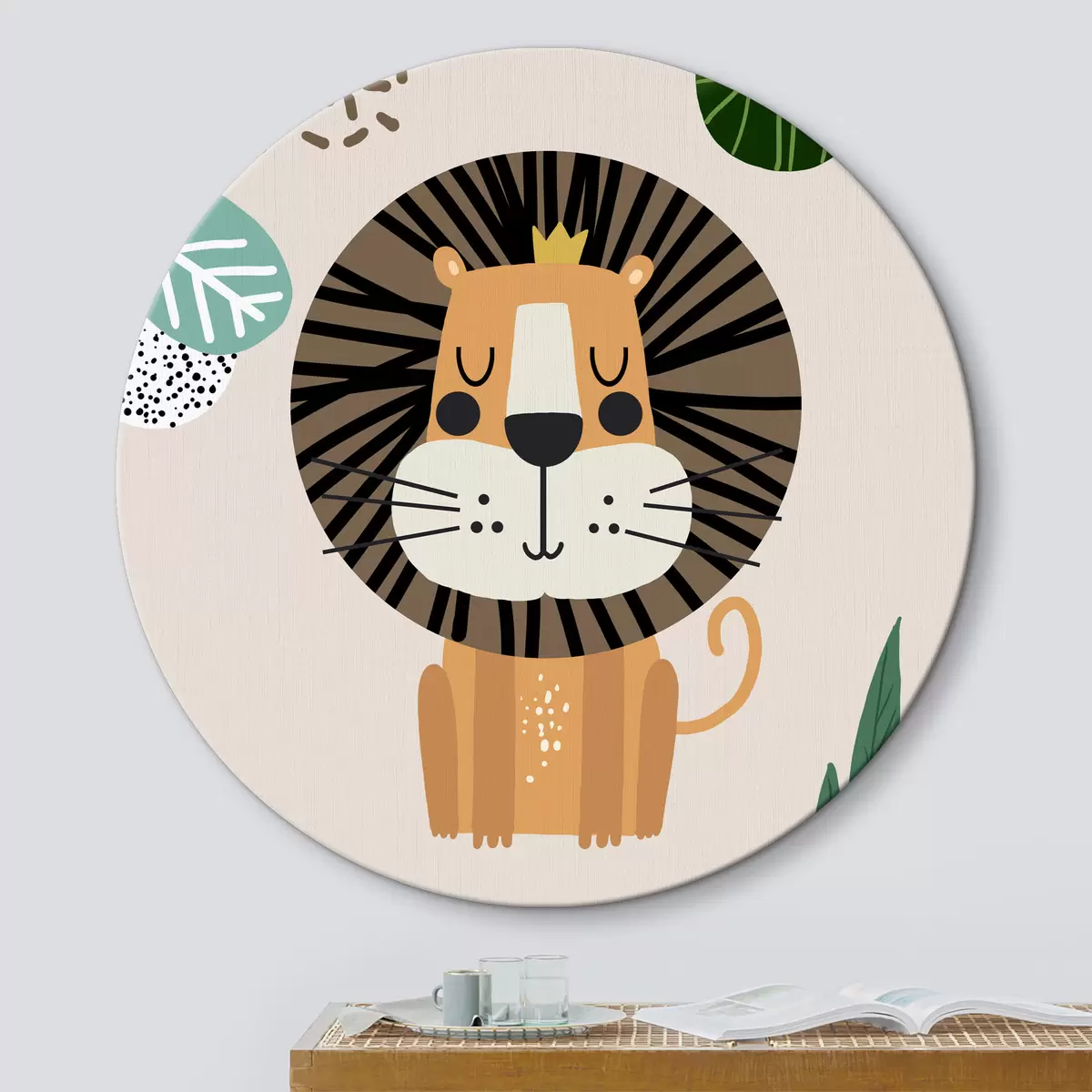 Tableaux rondes Lion dans la jungle en style safari, boho r39095