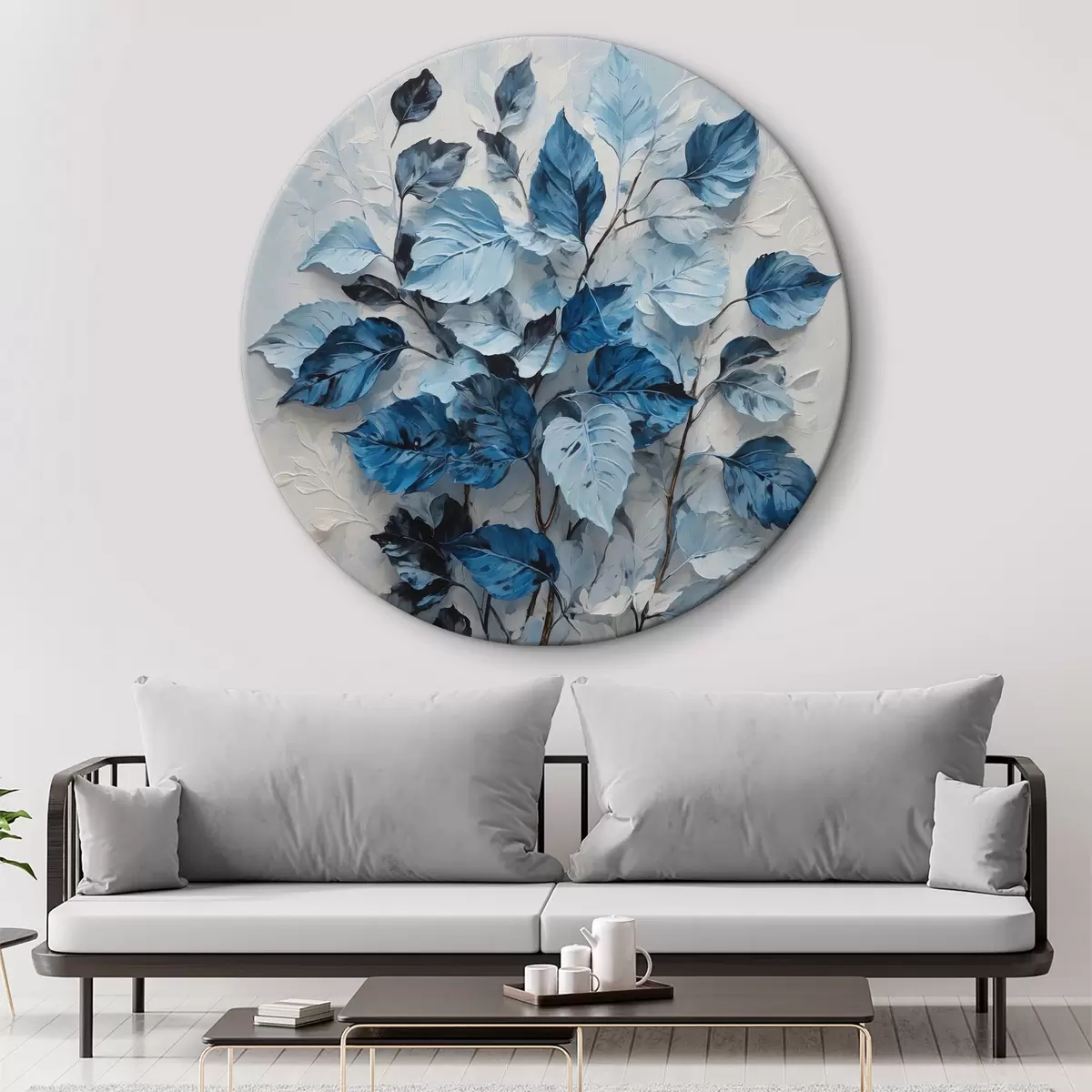 Tableaux rondes Plante aux feuilles blanches et bleues Nr r39156