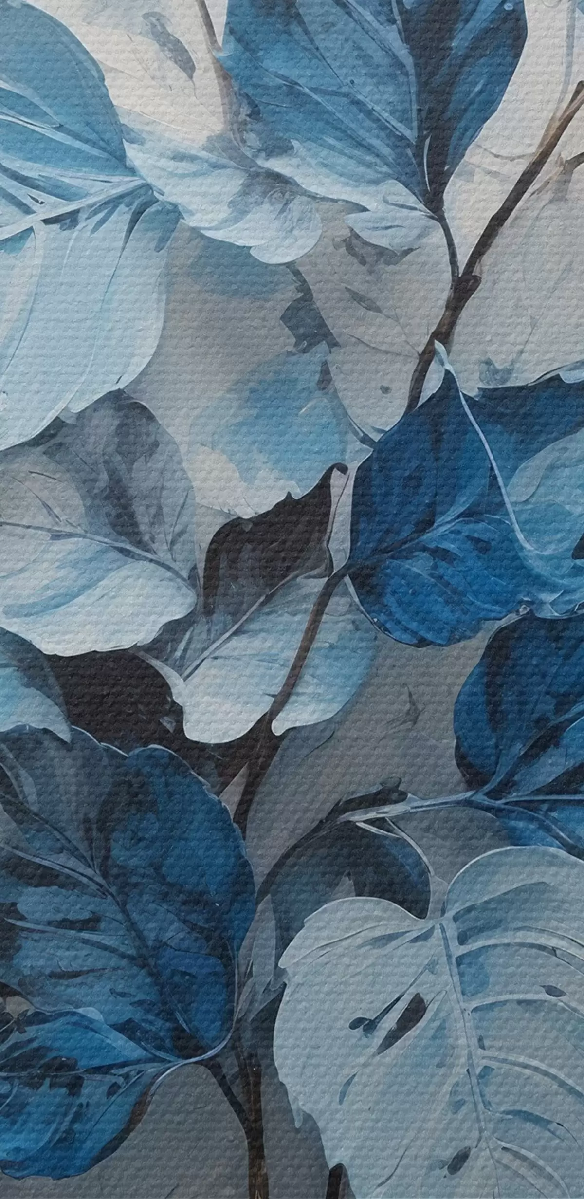 Tableaux rondes Plante aux feuilles blanches et bleues r39156