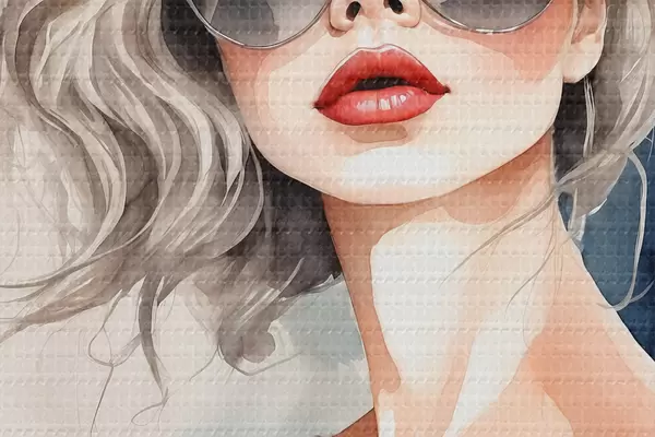 Tableaux rondes Fille avec des lunettes sur fond aquarelle r39158
