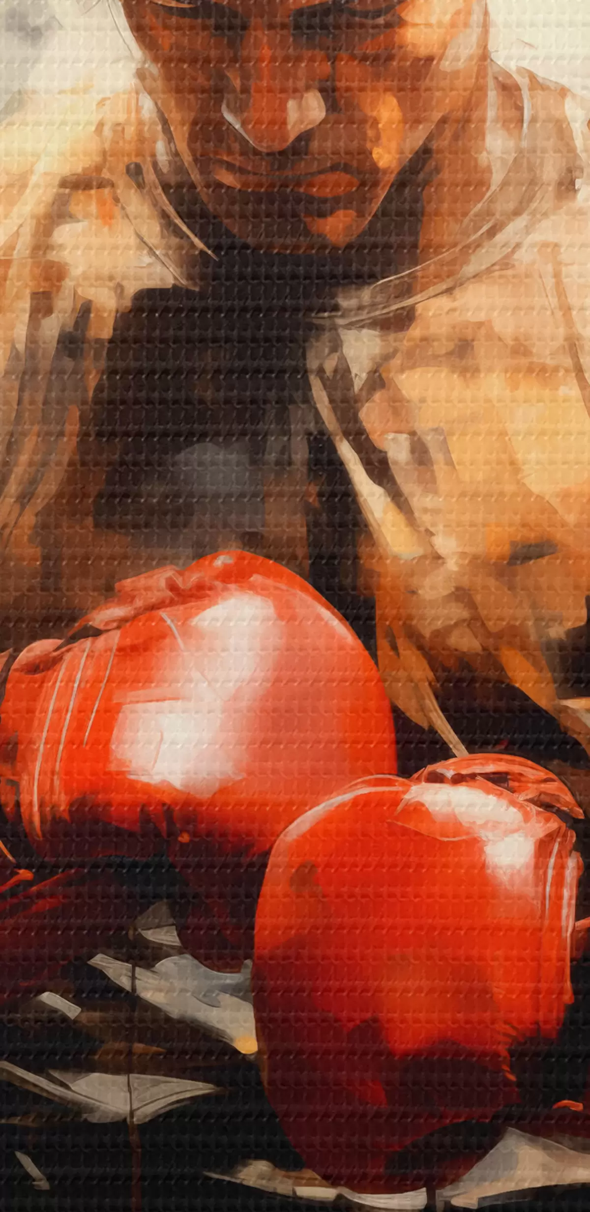 Tableaux rondes Boxer en peinture à l’huile de gants rouges Nr r39180