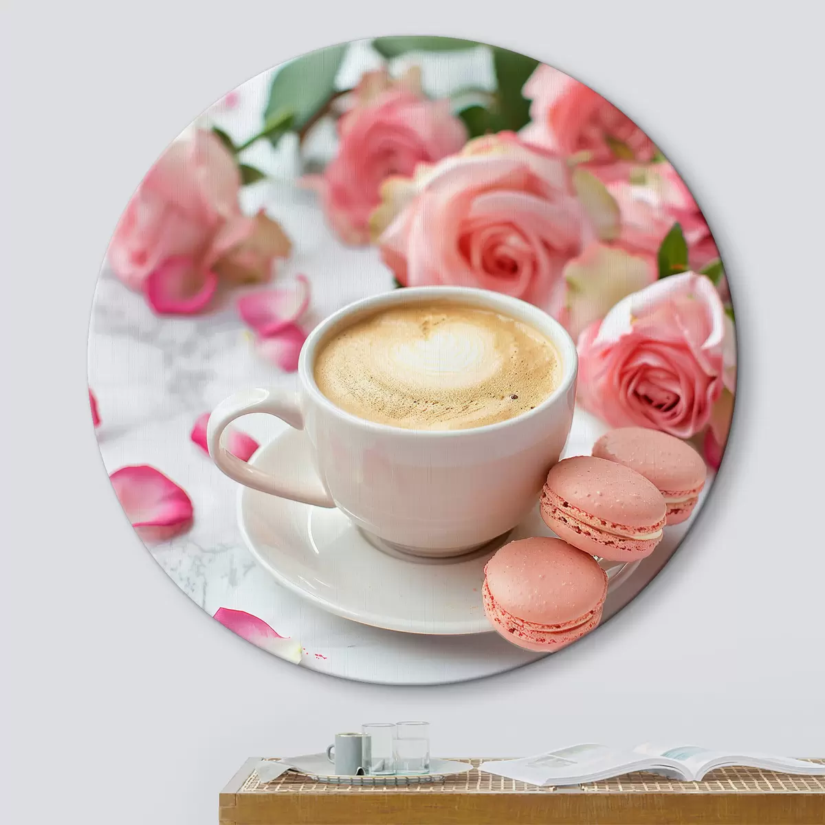 Tableaux rondes Macarons cappuccino et roses Nr r39231