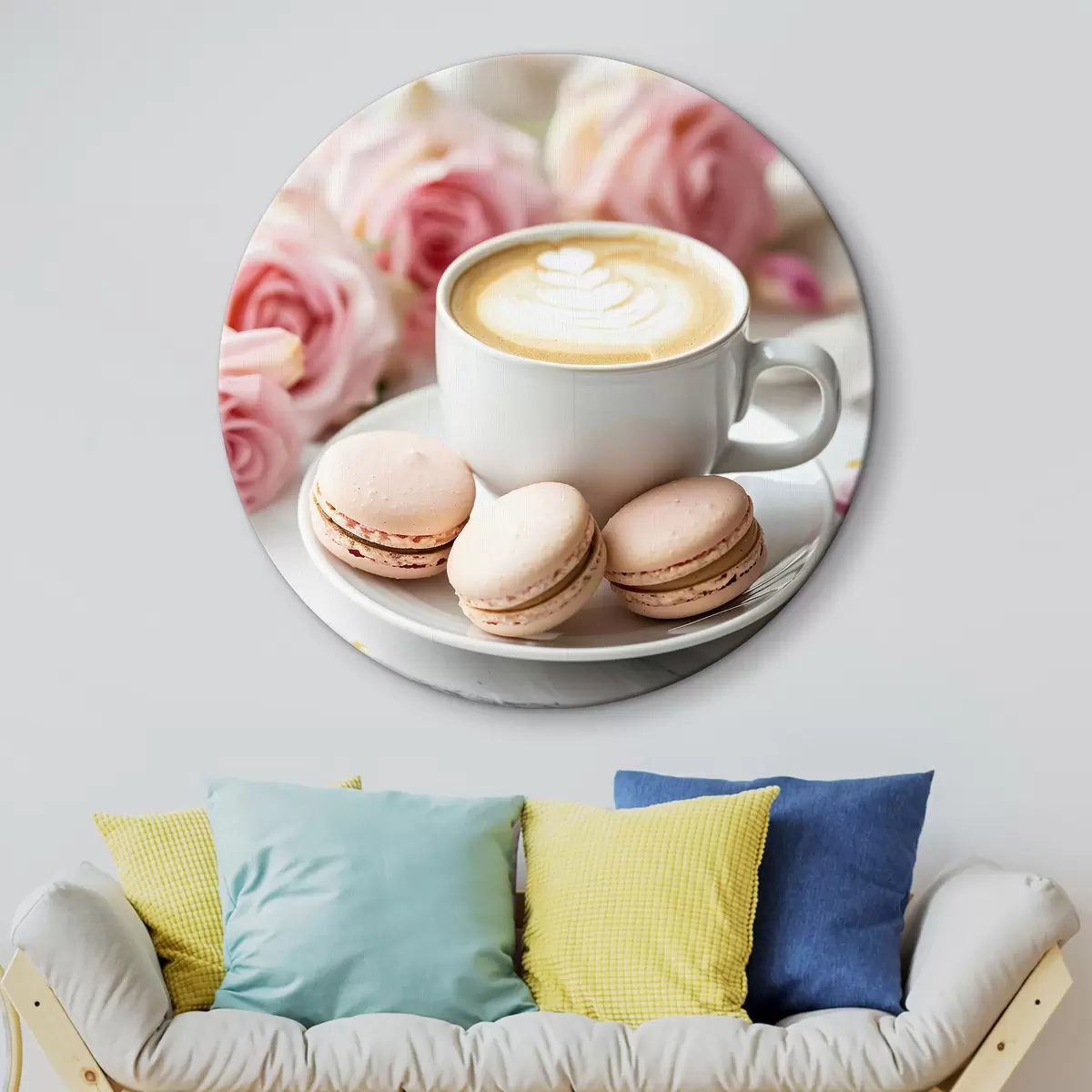 Tableaux rondes Tasse de café sur un fond floral délicat Nr r39232