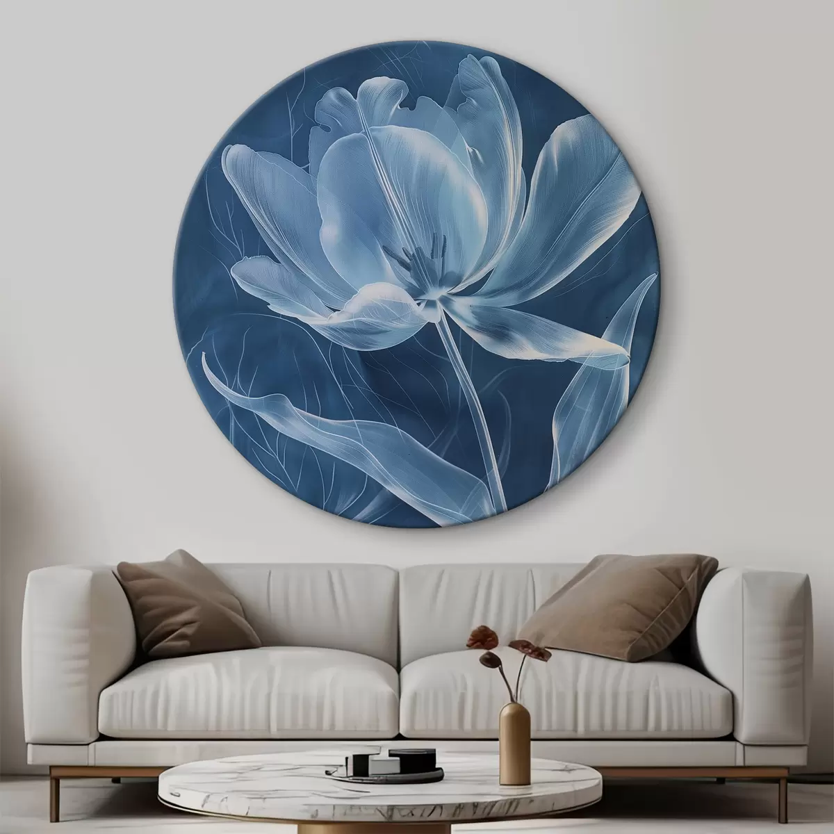 Tableaux rondes Fleur abstraite sur fond bleu Nr r39234