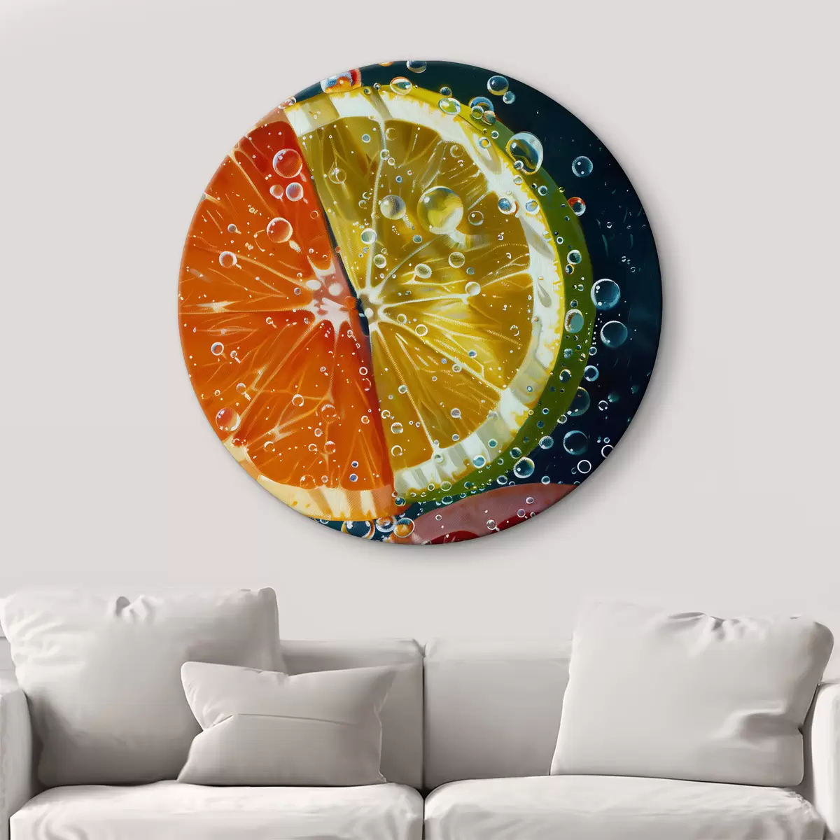 Tableaux rondes Pamplemousse orange citron vert brillant Nr r39236