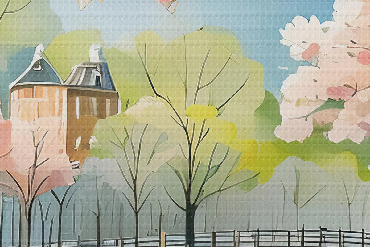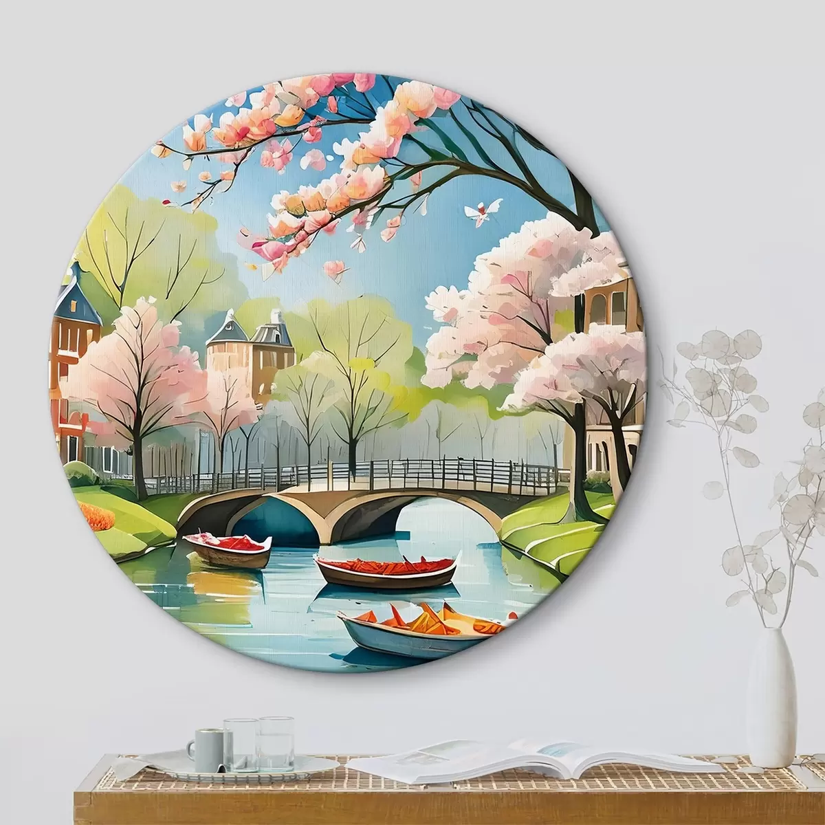 Tableaux rondes arbres en fleurs à Amsterdam au printemps Nr r39301