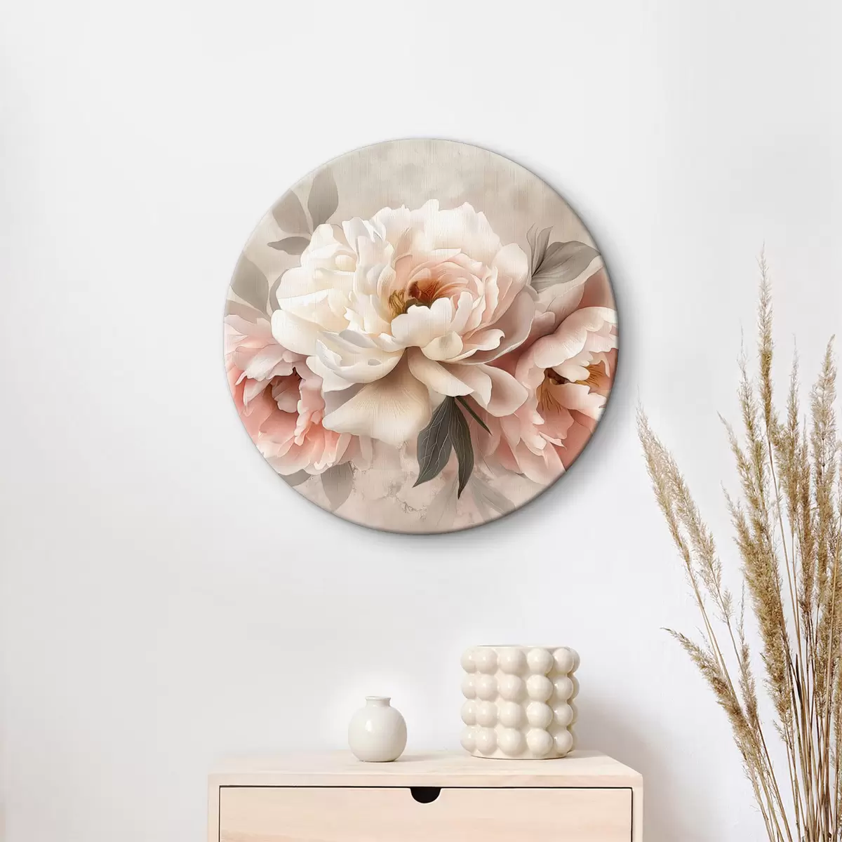 Tableaux rondes bouquet abstrait de pivoines dans des tons roses r39324