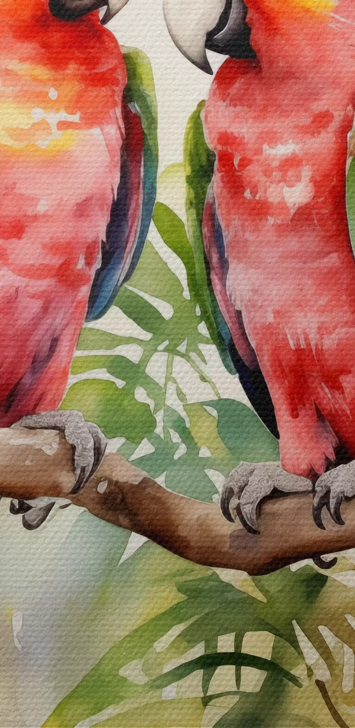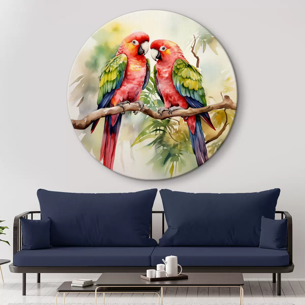 Tableaux rondes Deux perroquets aras brillants assis sur une aquarelle de branche Nr r39333