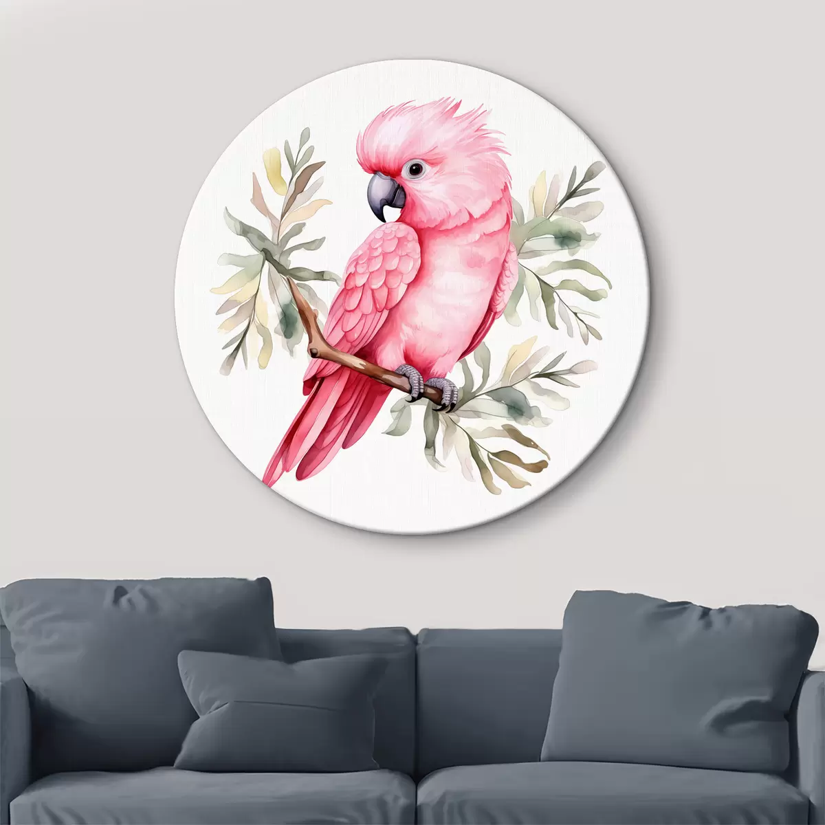Tableaux rondes Perroquet cacatoès rose assis sur une aquarelle de branche r39334