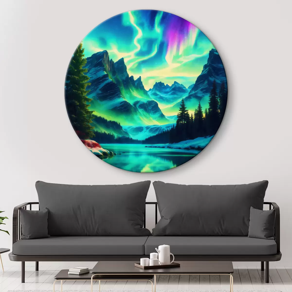 Tableaux rondes Aurores boréales au-dessus des montagnes Nr r39365