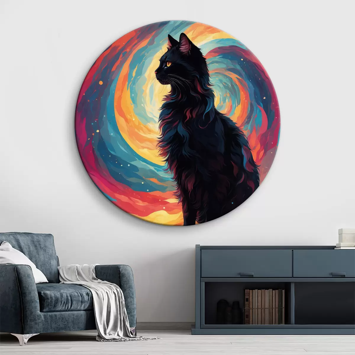 Tableaux rondes Chat noir sur fond d'espace Nr r39370