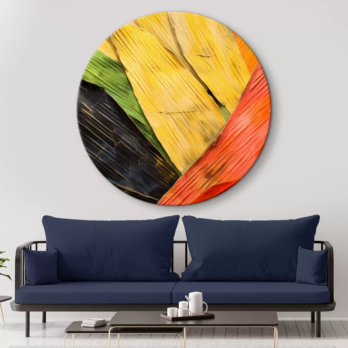 Tableaux rondes Peinture à l'huile abstraite avec texture et rainures, couleur jaune, verte, rouge, noire Nr r39429