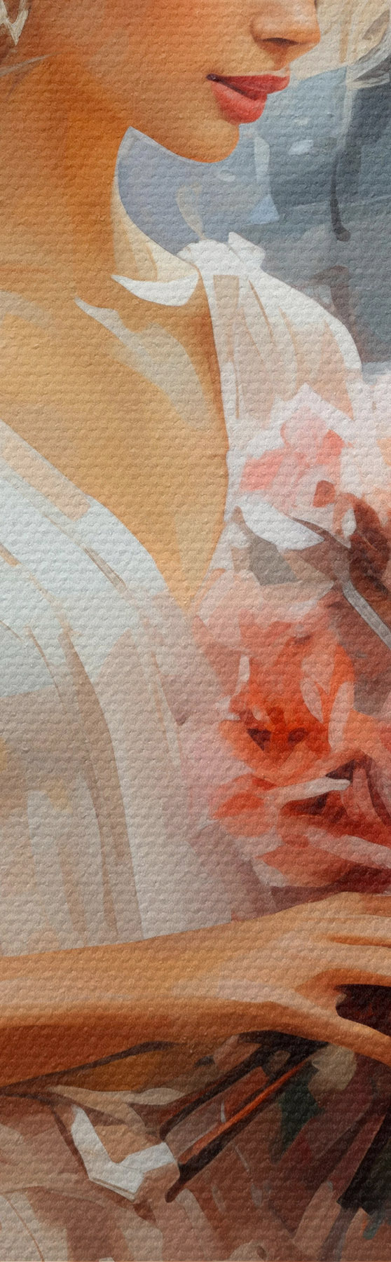 Trois types de matériaux peuvent être commandés : Economic Canvas - matériau dense et durable pour l'impression numérique, identique à la toile de peintre, surface imperméable, reproduction réaliste des détails, matériau à grain moyen. Premium Canvas - la texture ressemble à celle d'une toile de peintre (petits fils entrelacés). Reproduction douce et détaillée de l'image sur une surface mate. Eco-Premium - tissu 100 % coton de haute qualité. Grâce aux fibres naturelles de coton, le matériau est durable et résistant à l'usure. Excellente reproduction des couleurs et des détails.