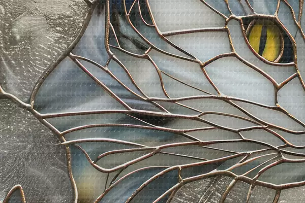Tableaux rondes Oeuvre inspirée du vitrail : chat parmi les feuilles d'automne Nr r39448