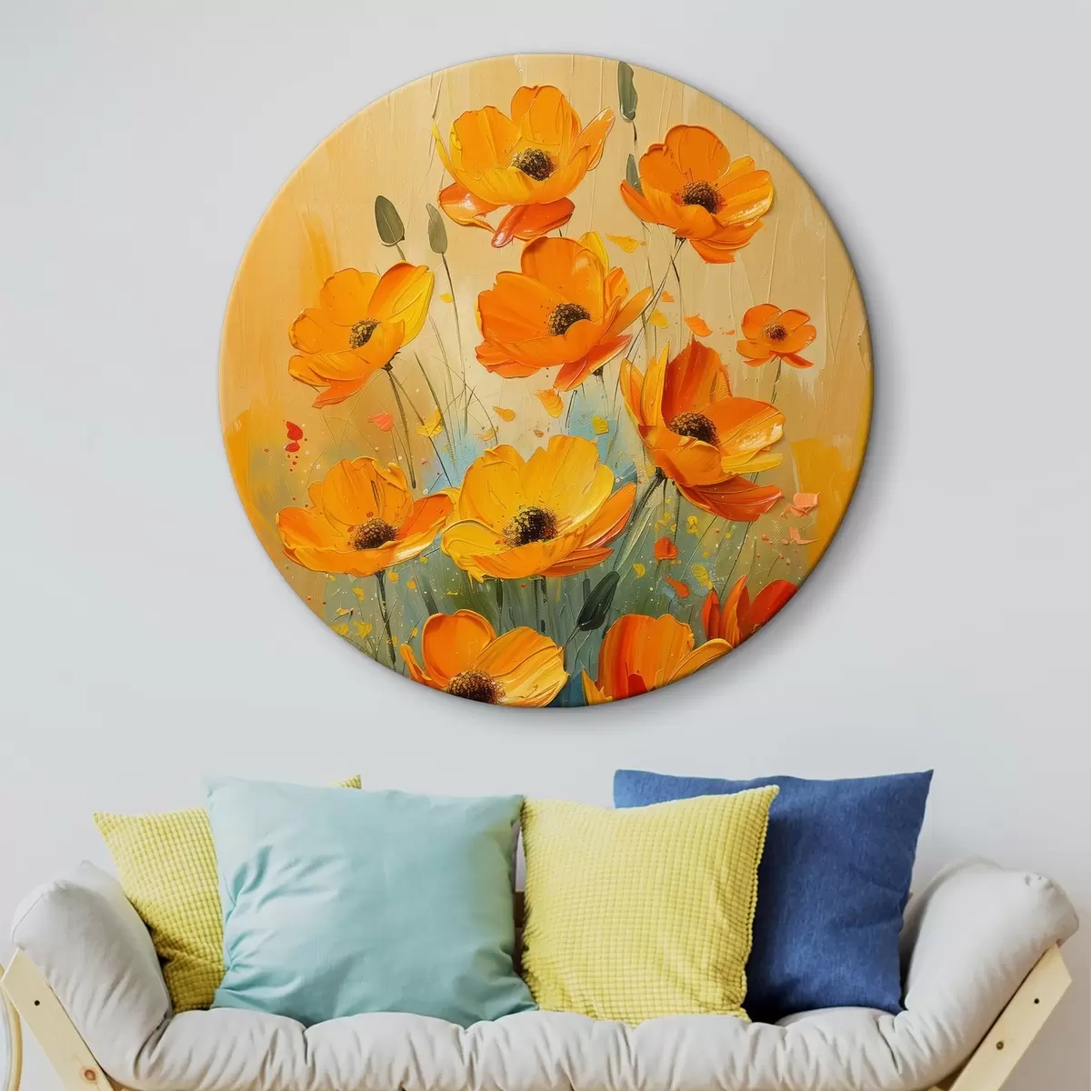 Tableaux rondes Coups audacieux de coquelicots jaune vif et orange Nr r39455
