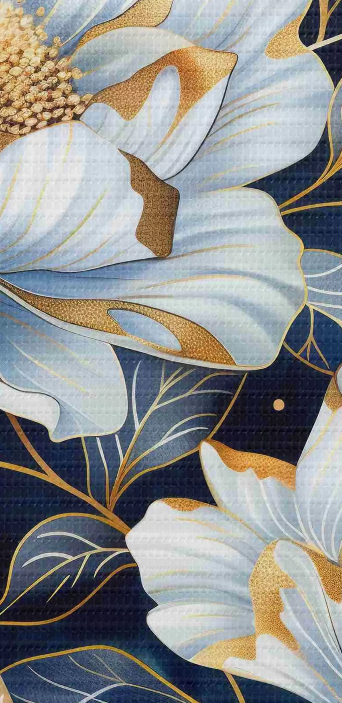 Tableaux rondes Pivoines et roses blanches avec contour, feuilles bleues et motifs floraux en arrière-plan r39457