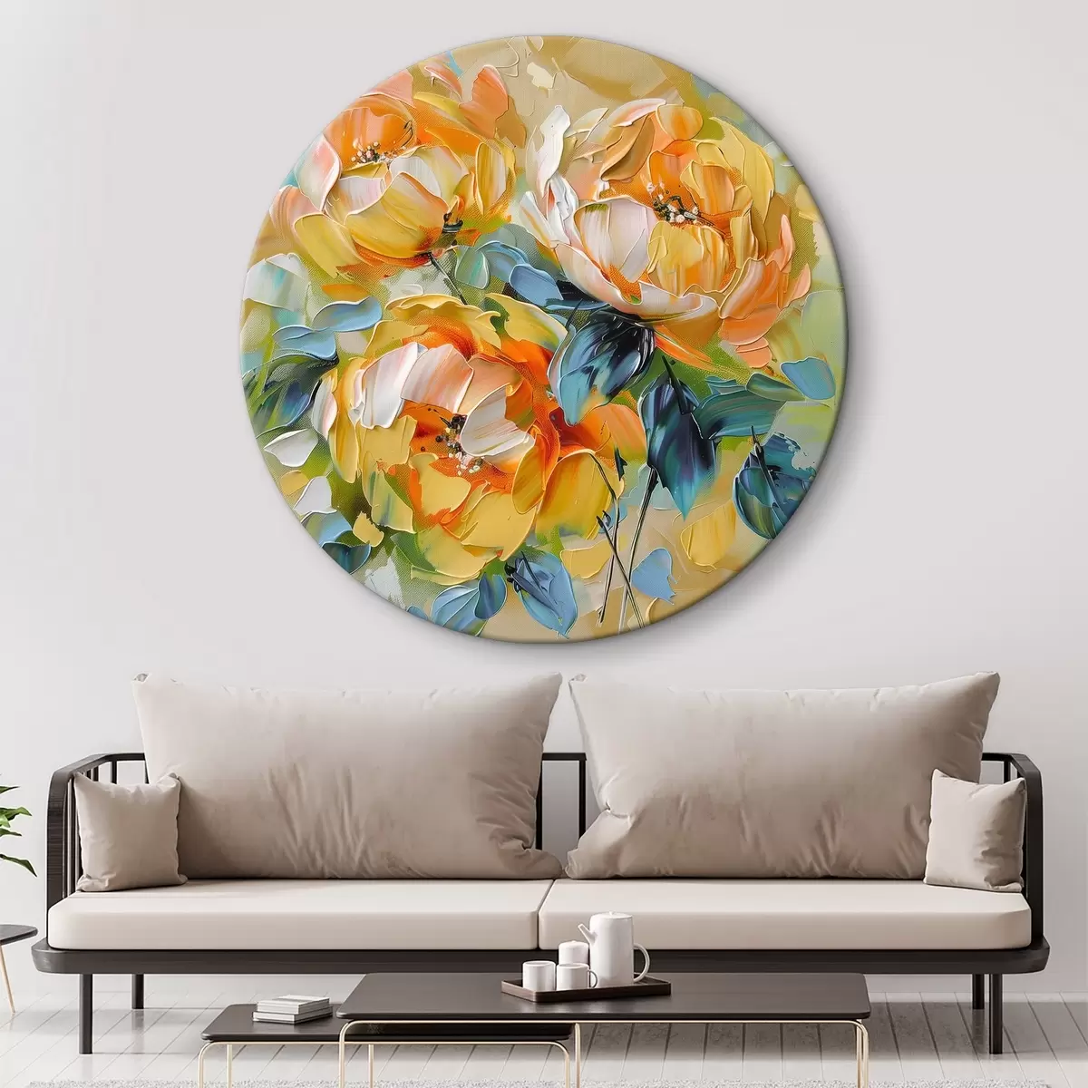 Tableaux rondes Fleurs vibrantes avec des textures riches dans une composition abstraite colorée r39460