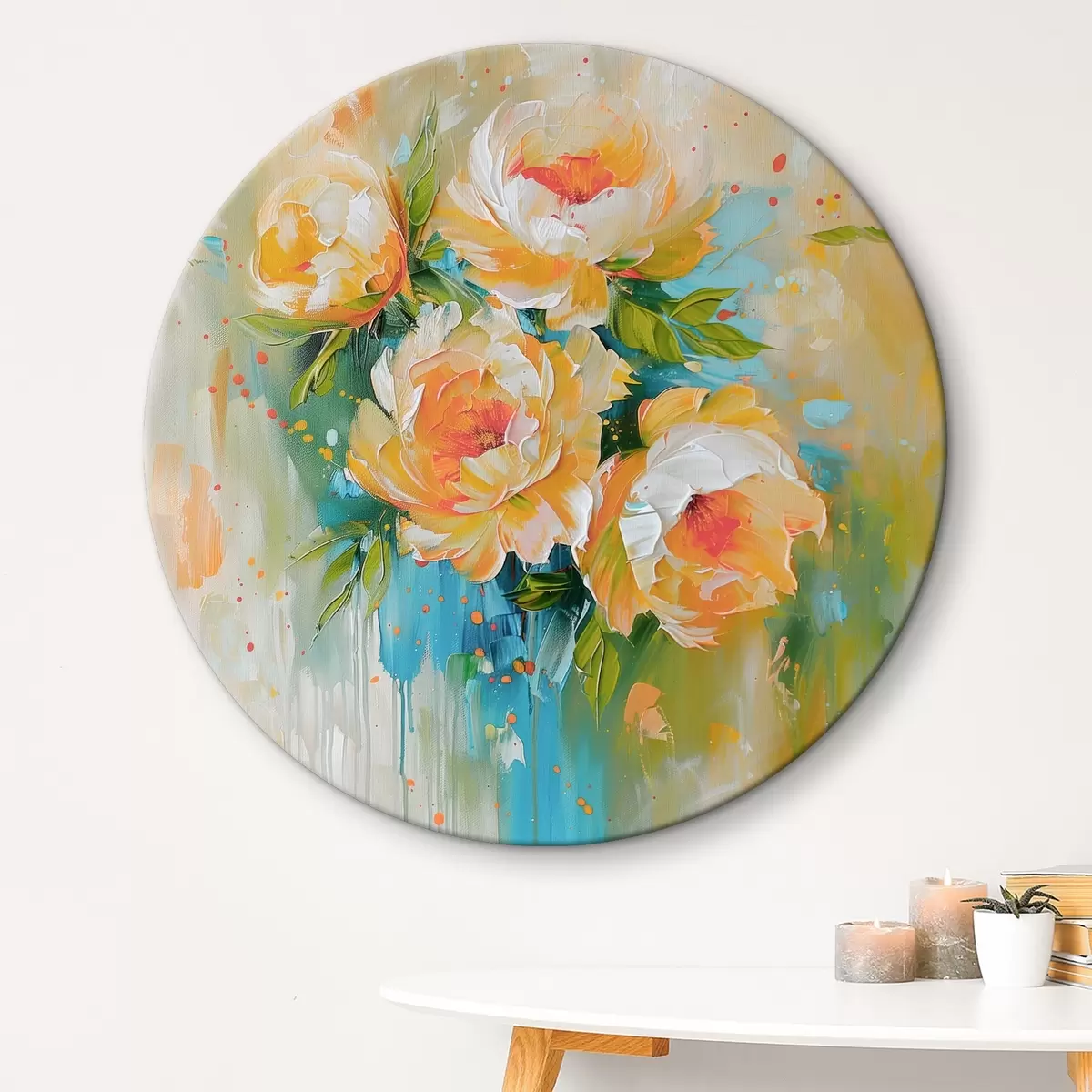Tableaux rondes Fleurs douces et délicates dans une peinture abstraite vibrante Nr r39461