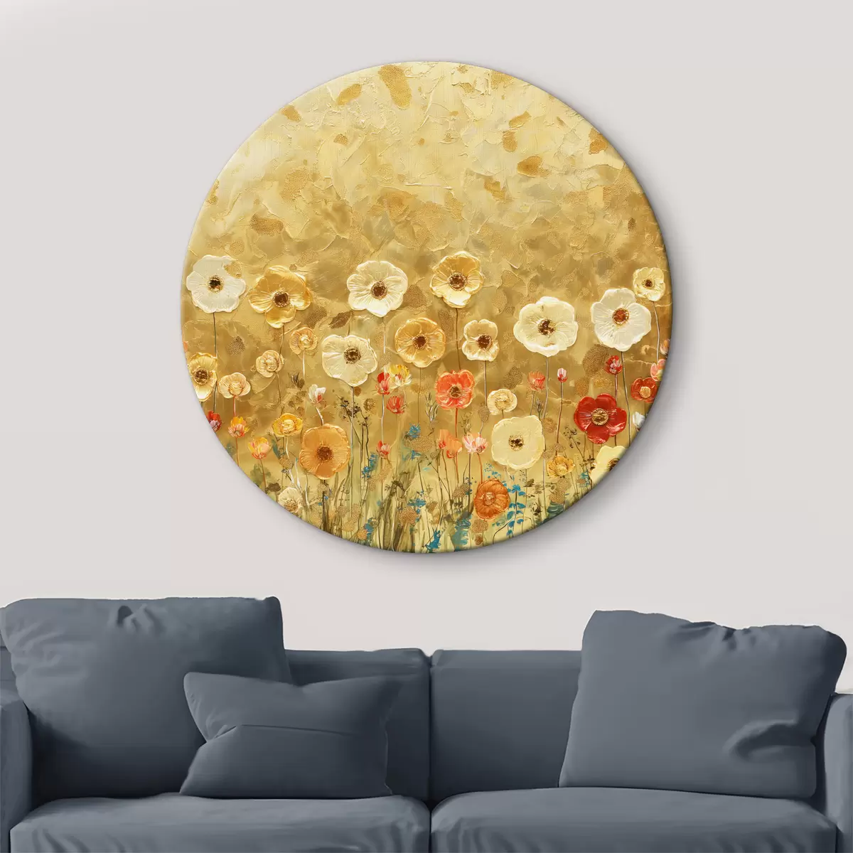 Tableaux rondes prairie de style klimt : fleurs pastel délicates à la texture fondue Nr r39464
