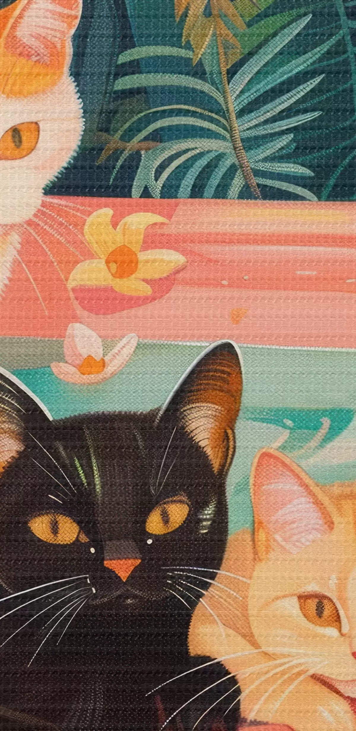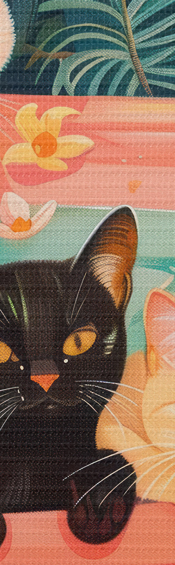 Tableaux rondes Chats dans un bain rose aux feuilles vertes, ambiance jungle r39465