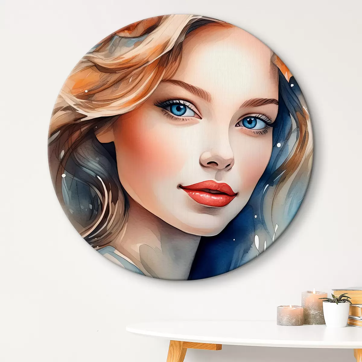 Tableaux rondes portrait d'une belle fille à l'aquarelle r39478