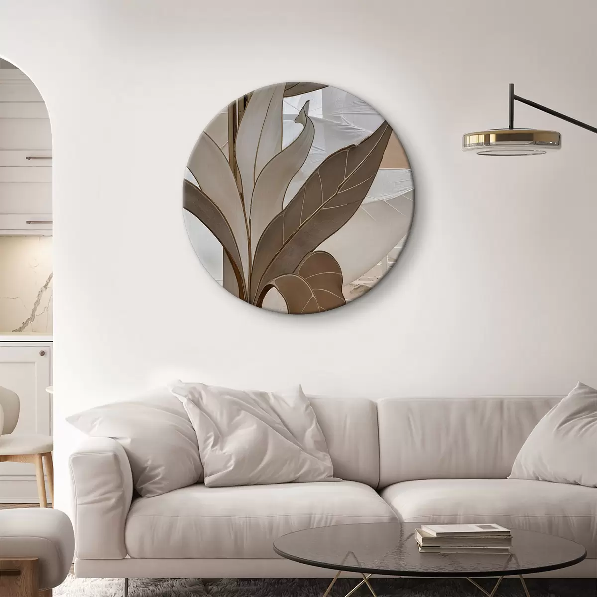 Tableaux rondes Vue rapprochée d'un motif géométrique abstrait avec des formes et des textures qui se chevauchent dans des tons de beige r39498