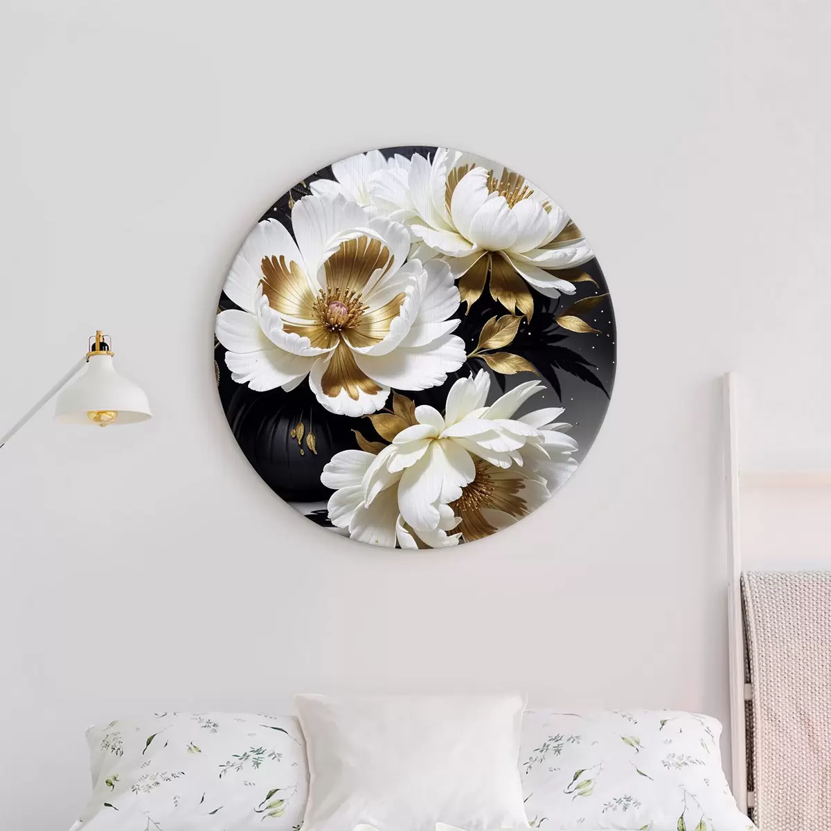 Tableaux rondes Fleurs de pivoines blanches en pleine floraison, sur fond sombre Nr r39504