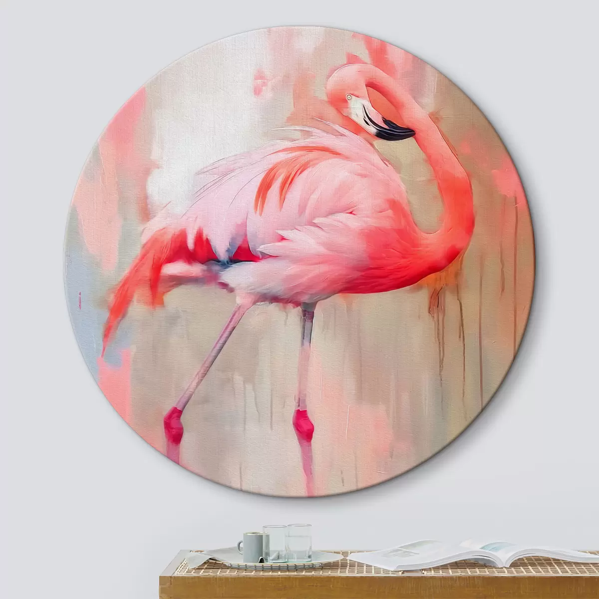 Tableaux rondes Oiseau flamant rose Nr r39536