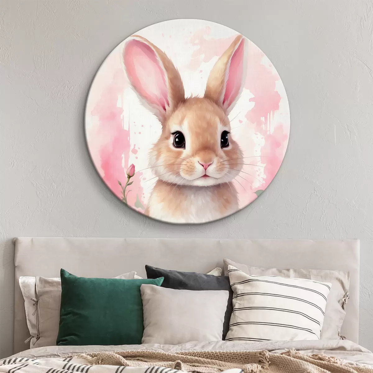 Tableaux rondes Lièvre mignon en fleurs roses r39559
