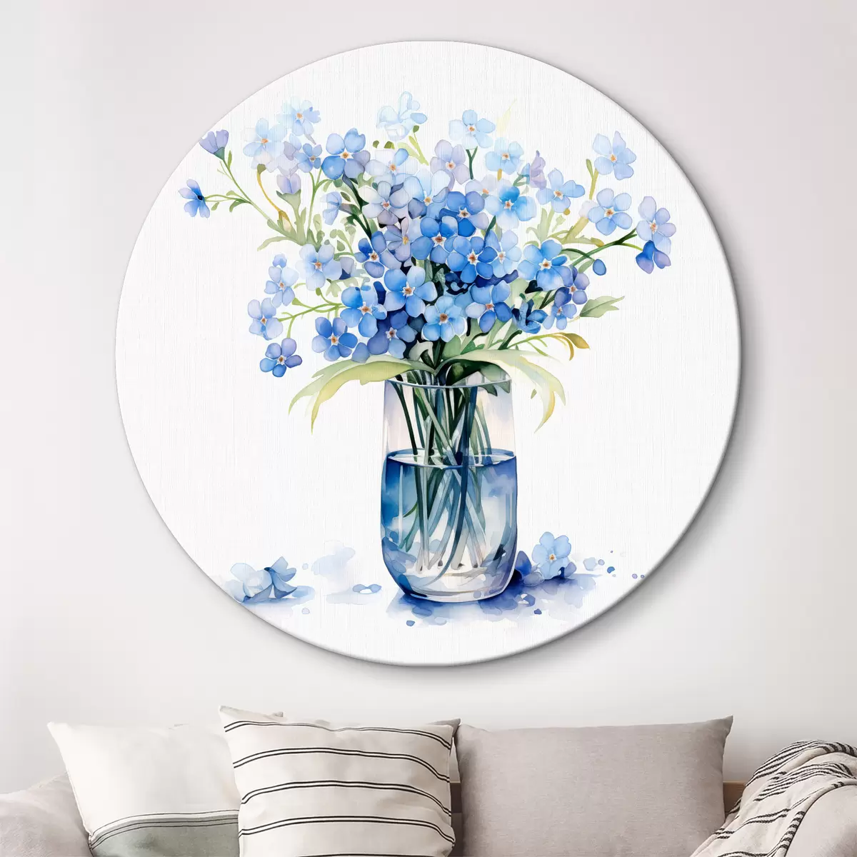 Tableaux rondes Bouquet de fleurs sauvages bleues dans une aquarelle de vase transparent Nr r39564