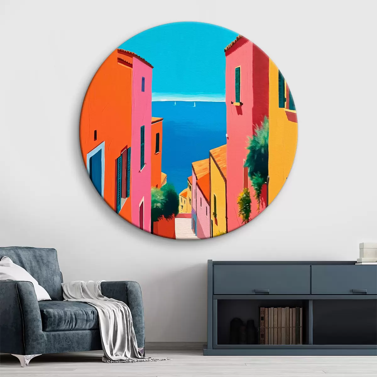 Tableaux rondes Vue mer et rue lumineuse Nr r39579