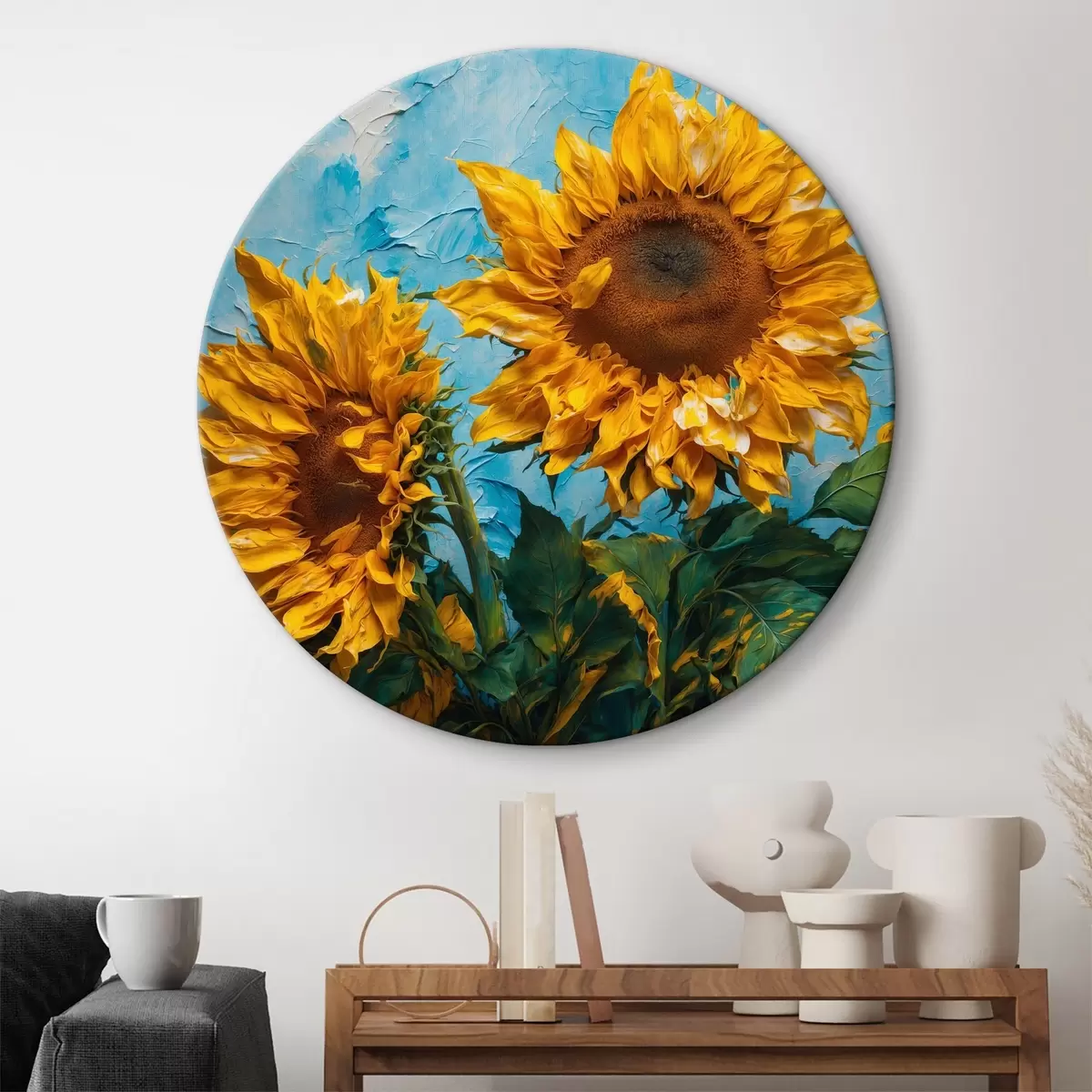 Tableaux rondes Tournesols sur fond huileux Nr r39594