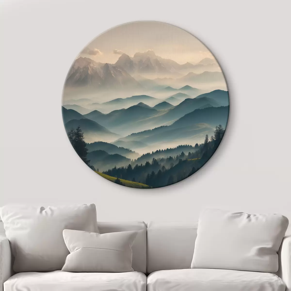 Tableaux rondes Vue sur les montagnes brumeuses Nr r39596