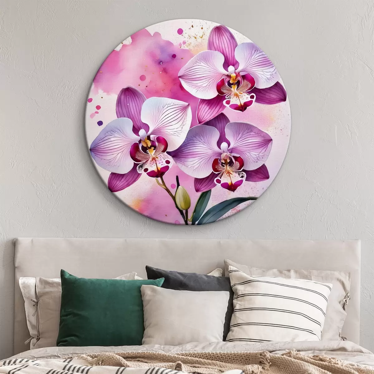 Tableaux rondes orchidées roses à l'aquarelle Nr r39622