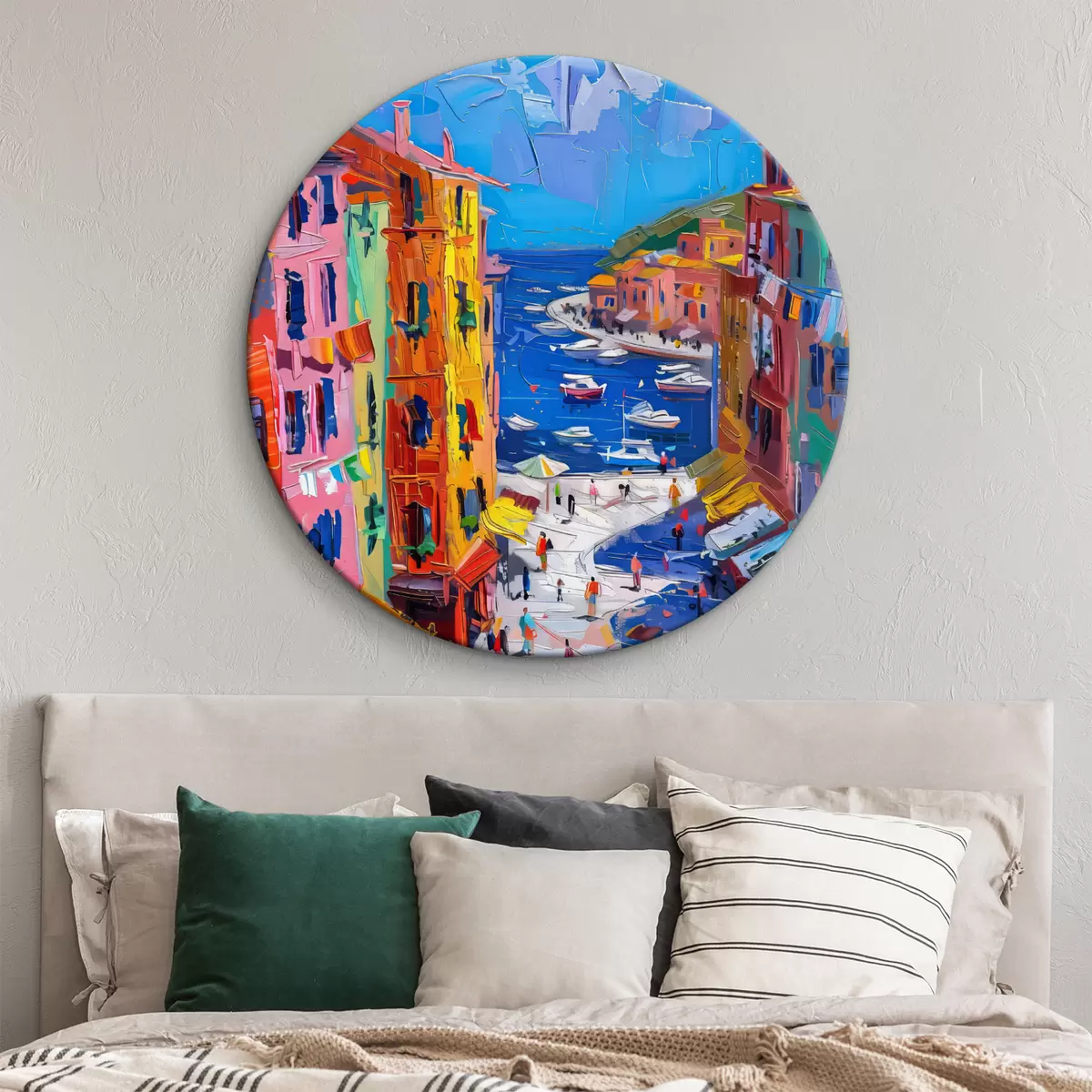 Tableaux rondes Village français au crépuscule : une impression à la manière de Van Gogh Nr r39627