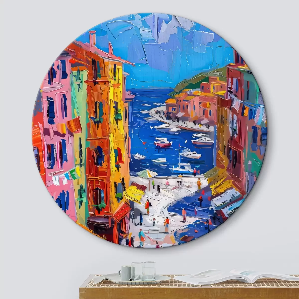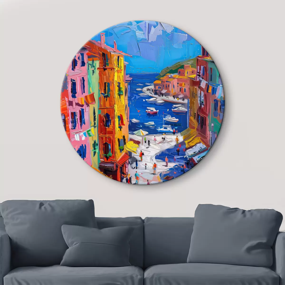 Tableaux rondes Village français au crépuscule : une impression à la manière de Van Gogh r39627
