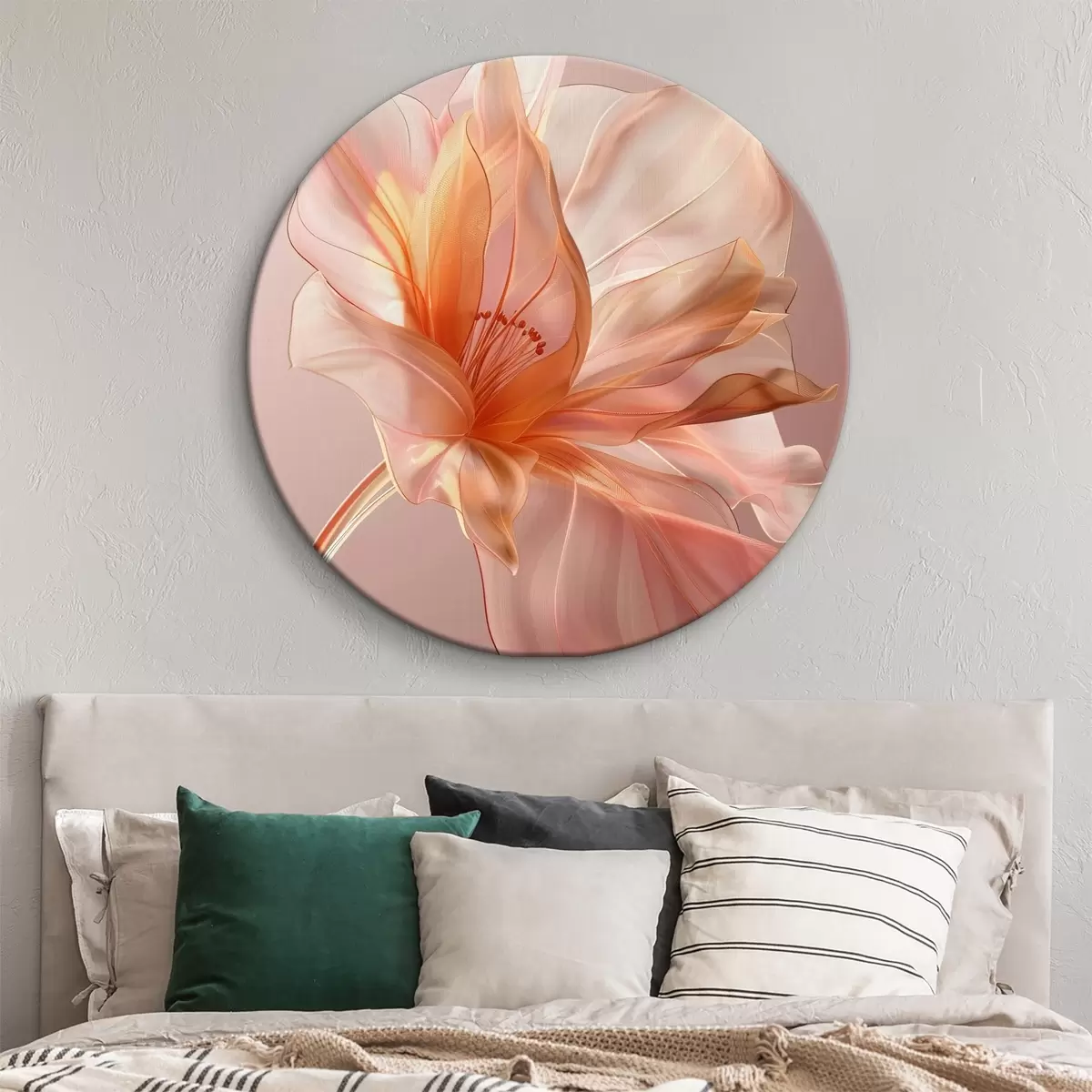 Tableaux rondes Pétale de fleur de pêcher sur fond rose avec des lignes fluides, un minimalisme et des détails délicats Nr r39631